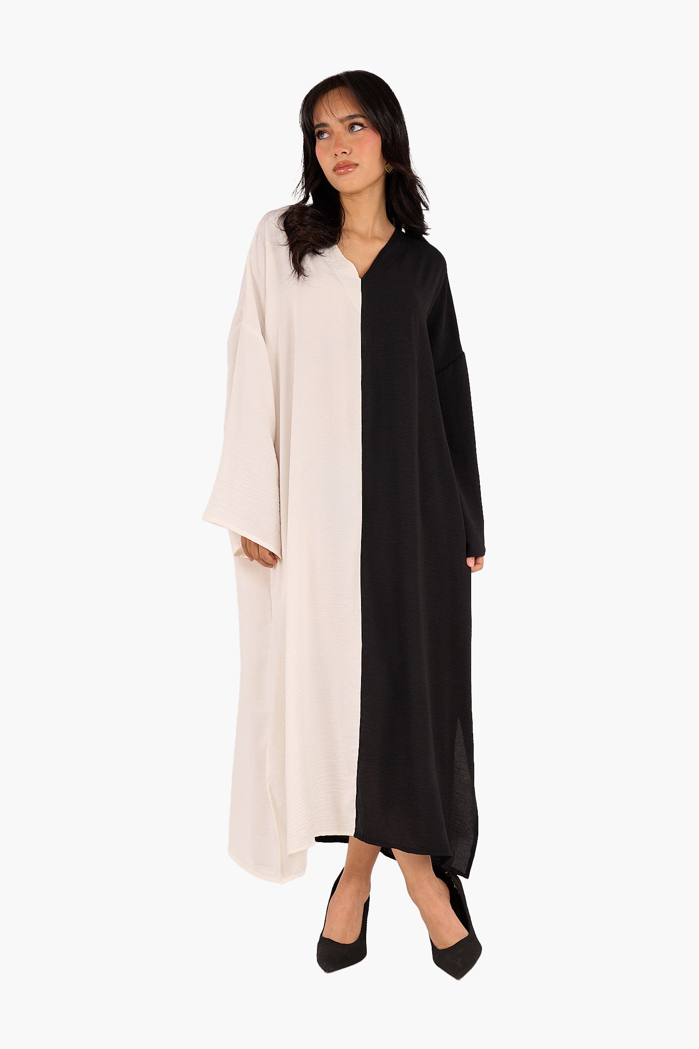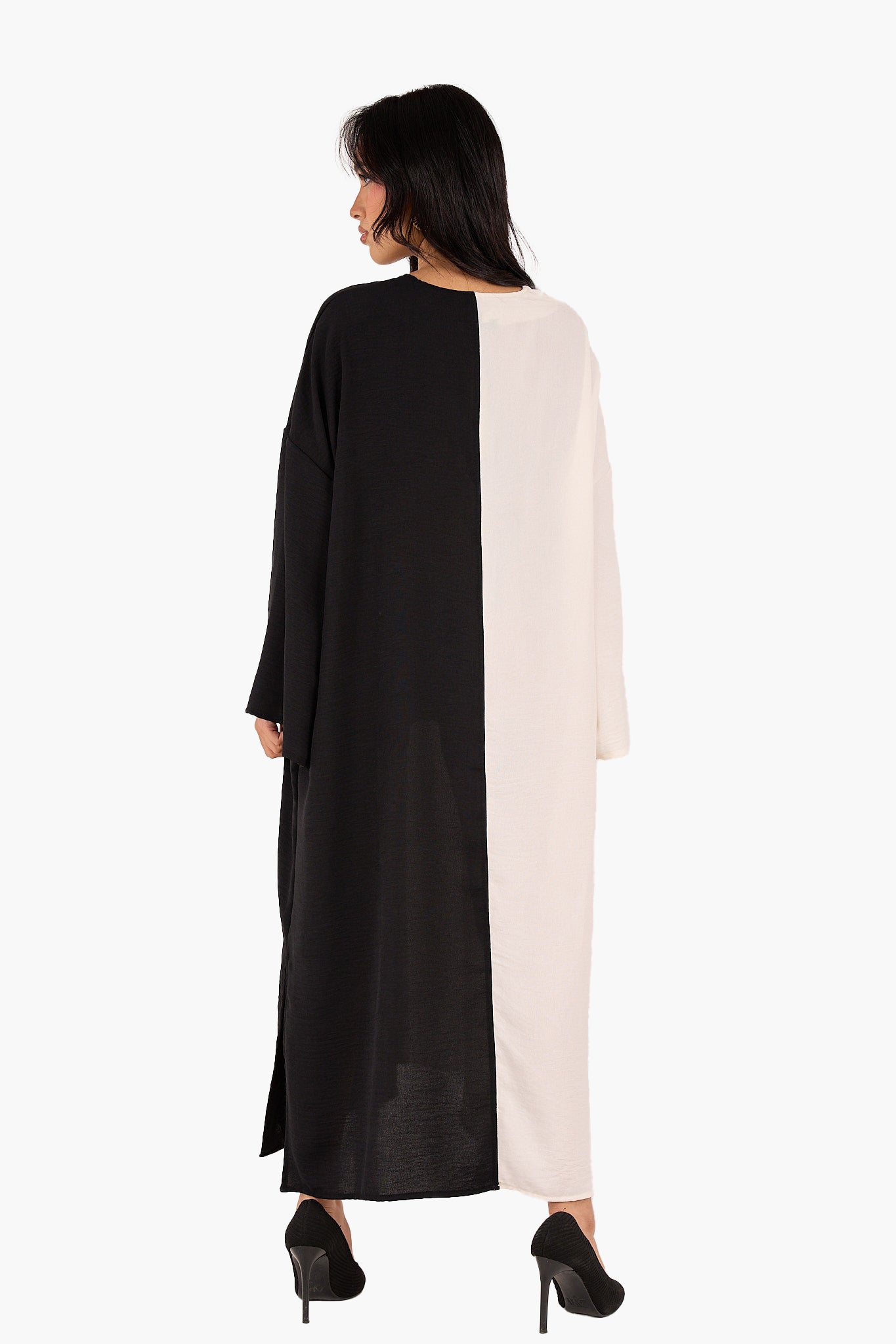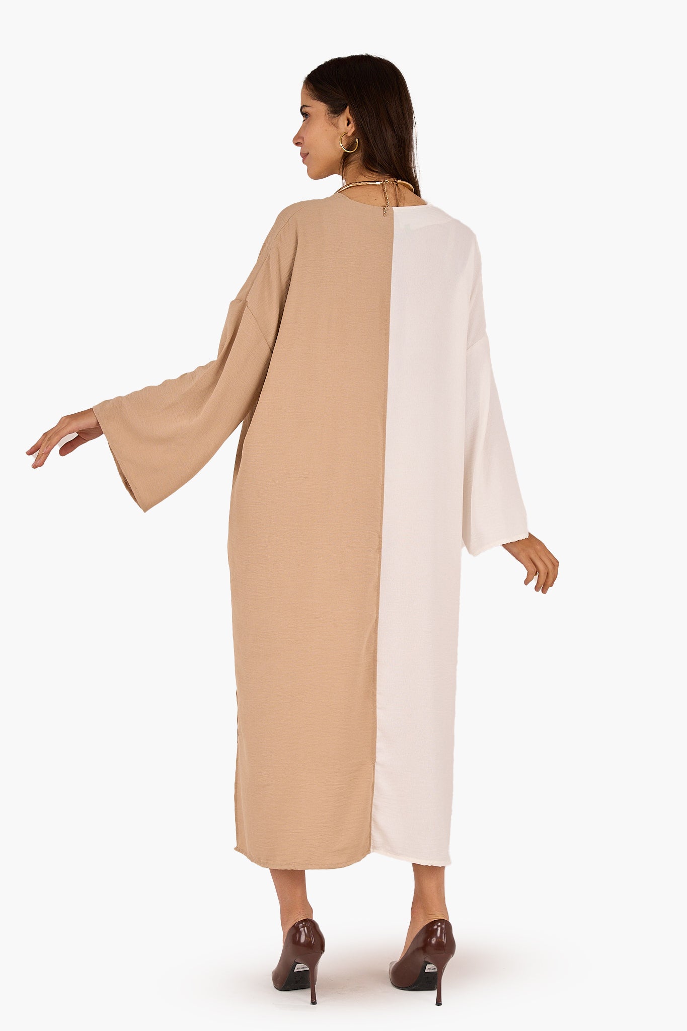 تألقي بإطلالات أنيقة تجذب الأنظار مع الفستان التينسل برقبة على شكل V بلونين من كلو، بتصميم يجمع بين الراحة والرقي. مصنوع من قماش التينسل الناعم والمسامي مع قصة مريحة لينساب بجاذبية على قوامك. تُضفي فتحة الرقبة على شكل V لمسة أنثوية جذابة بينما يوفر النمط بلونين اختلافًا جذابًا للألوان. مع أكمام طويلة وفتحتين جانبيتين وطول حتى الكاحل ليصبح مثاليًا للمناسبات الكاجوال والخروجات الراقية.