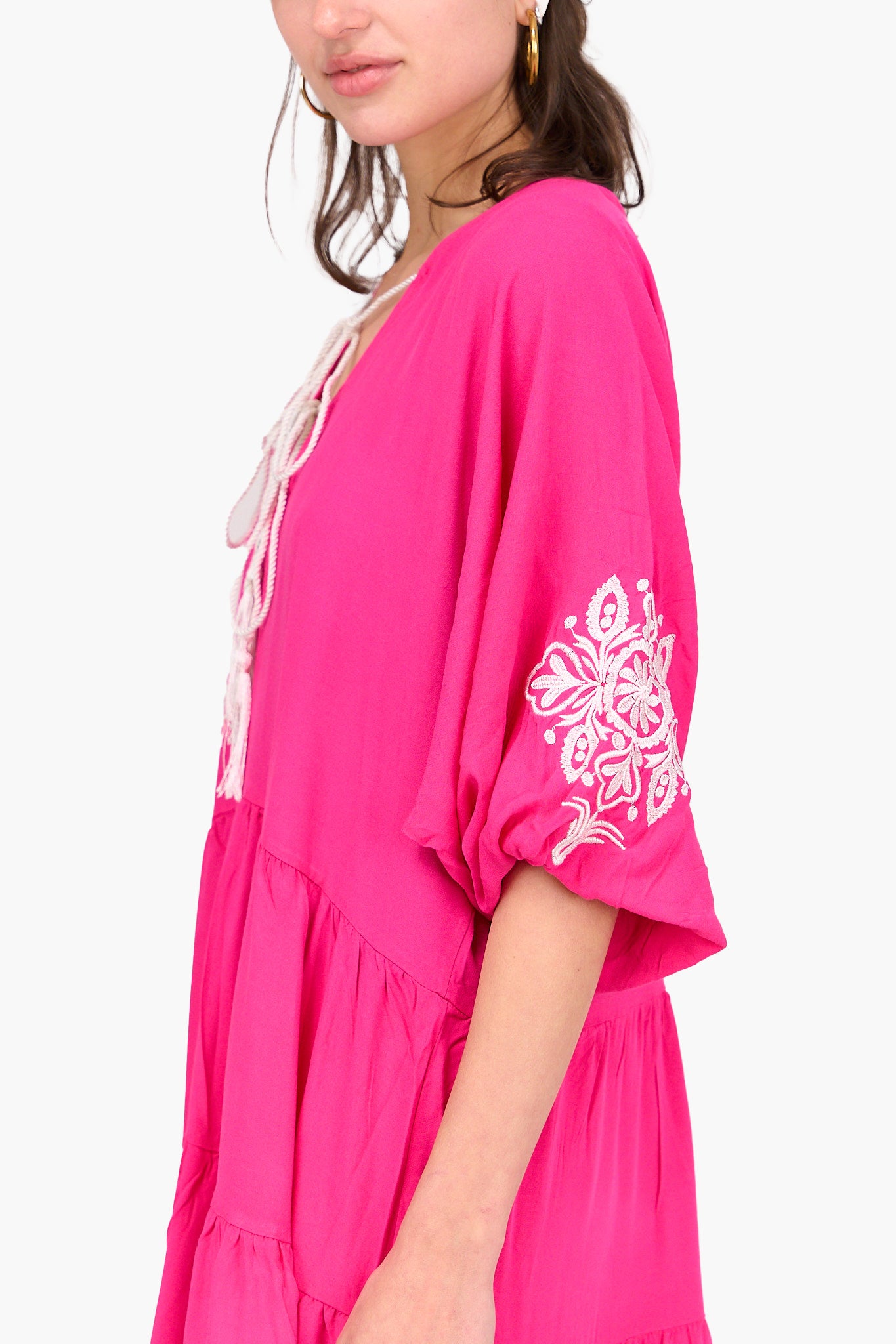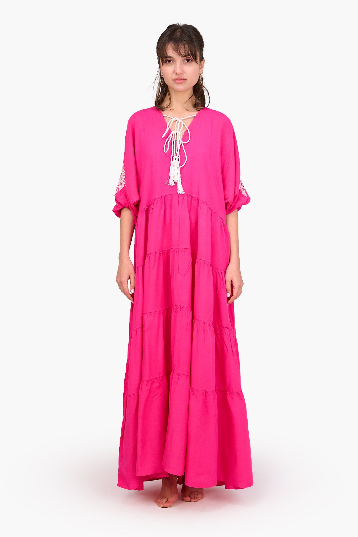 تألقي بإطلالات تجمع ين الراحة والأناقة مع الفستان التينسل الماكسي المطرز من كلو. مصنوع من قماش التينسل الناعم والمسامي مع قصة مريحة تنساب بجاذبية في إطلالاتك اليومية. مع فتحة رقبة على شكل V ورباط للتضييق ليُضفي لمسة جذابة بينما يوفر التصميم بطبقات مظهرًا أنثويًا أنيقًا. بالإضافة إلى تطريز رقيق على الأكمام 3/4 لتعزز من جاذبية الفستان، مع أساور بأستك للمزيد من الأناقة. مع نمط سادة وطول ماكسي وتصميم سهل الارتداء، ليصبح الفستان المثالي في دولاب ملابسك للإطلالات الكاجوال والفورمال.