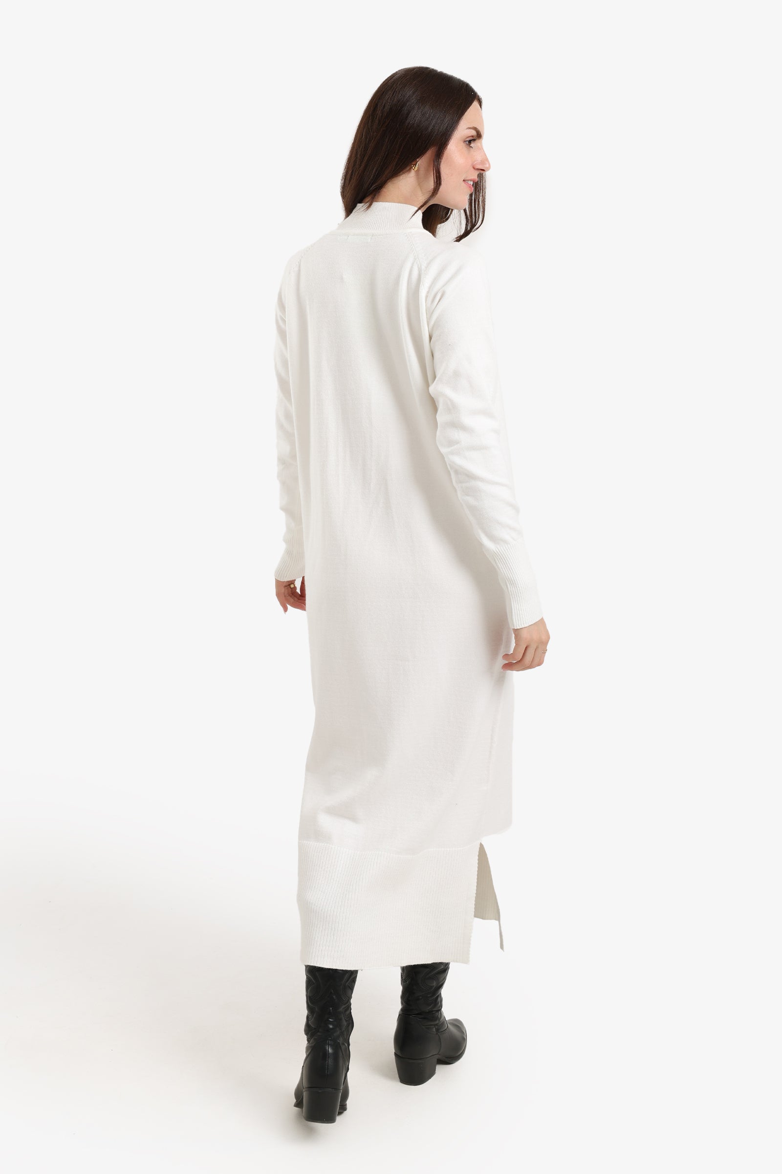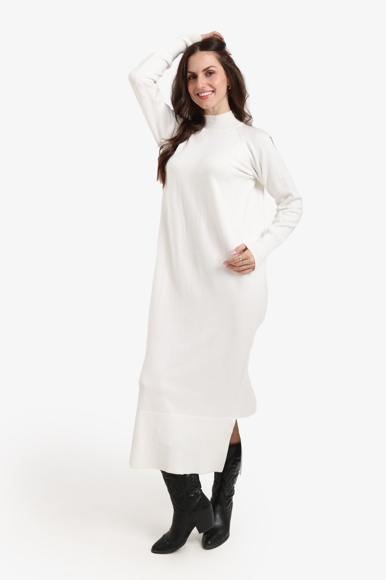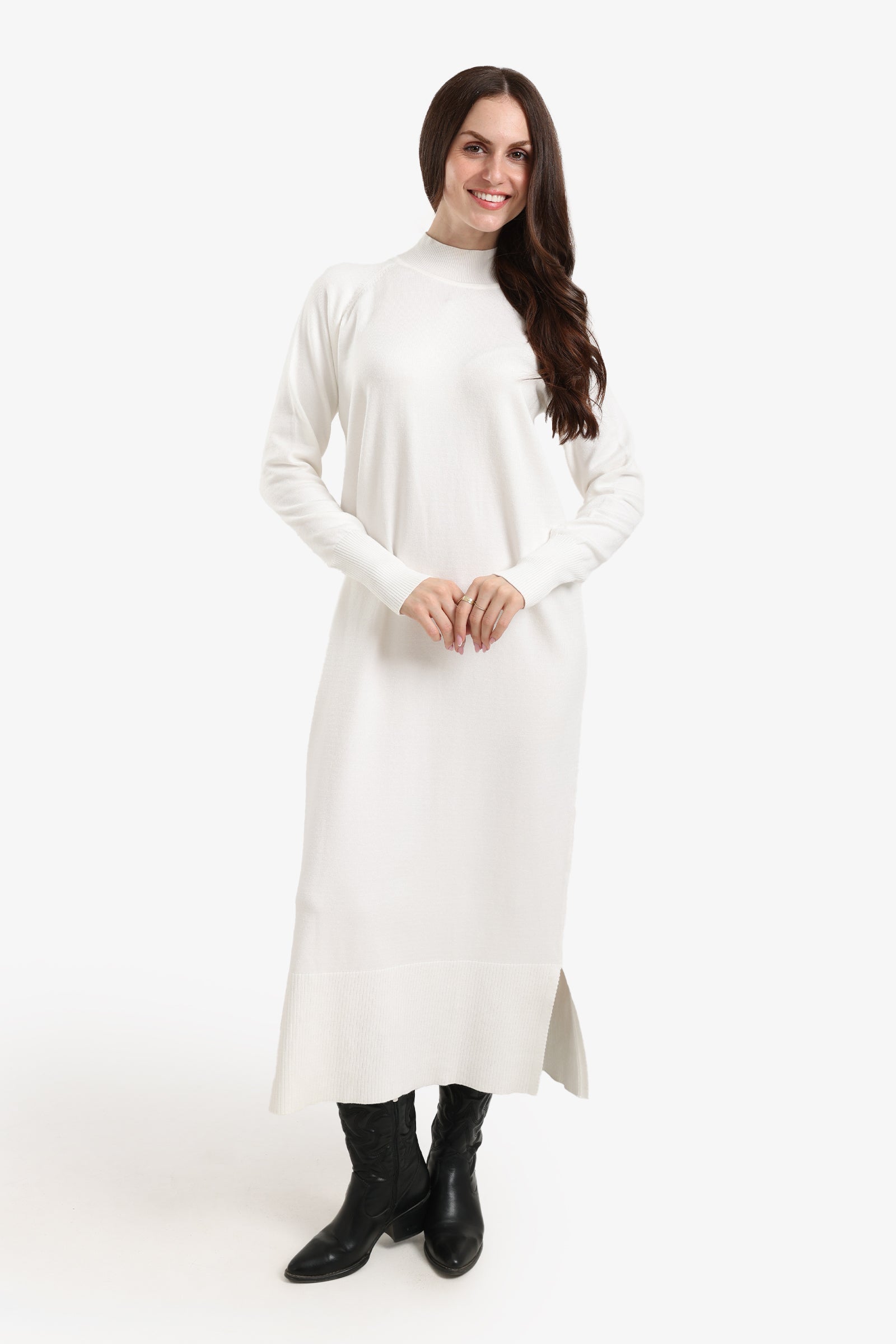 هذا الفستان المصنوع من الصوف يأتي بقصّة منتظمة ونقشة سادة تمنحه بساطة كلاسيكية خالدة. يتميز برقبة عالية دافئة وأكمام طويلة مع طول متوسط، ويُكمل بتفاصيل مضلعة وفتحة جانبية يمنح سهولة في الحركة. قطعة متعددة الاستخدامات تجمع بين الدفء والأناقة البسيطة.