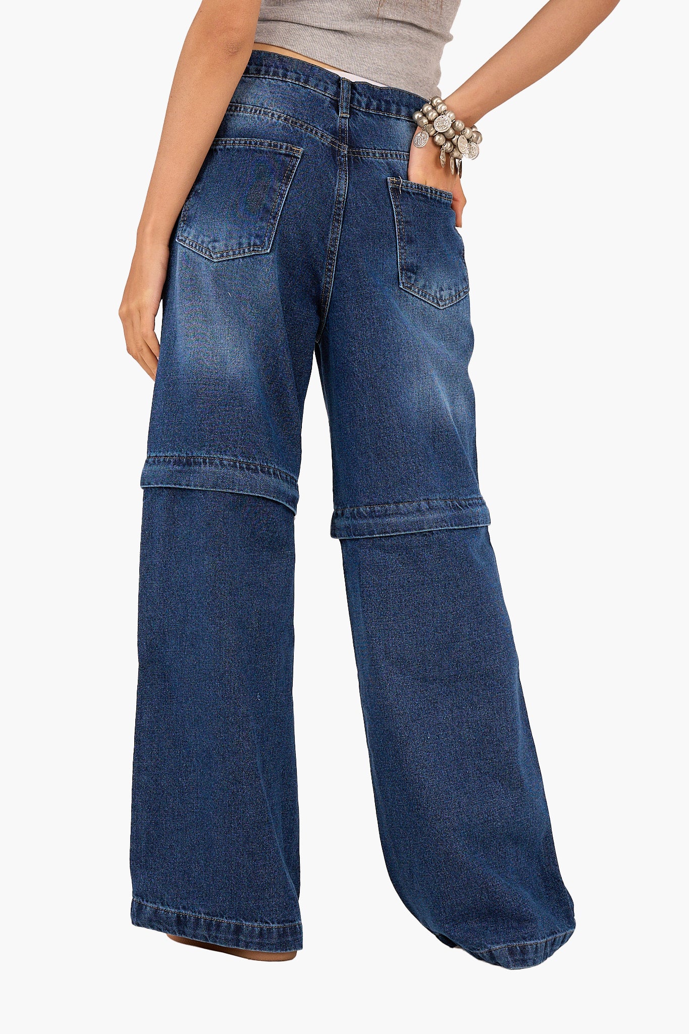 تقدم لكِ كلو بنطلون جينز 2 في 1 بتصميم يجمع بين الأناقة والتنوع. مصمم بسوستة حتى يمكنك تغييره من بنطلون بطول كامل إلى شورت حتى الركبة، ليناسب جميع الفصول. مصنوع من الجينز الممتاز لضمان الملائمة المريحة طوال اليوم. مع إغلاق بزرار وسوستة يضمن الملائمة المظبوطة مما يعزز الراحة.