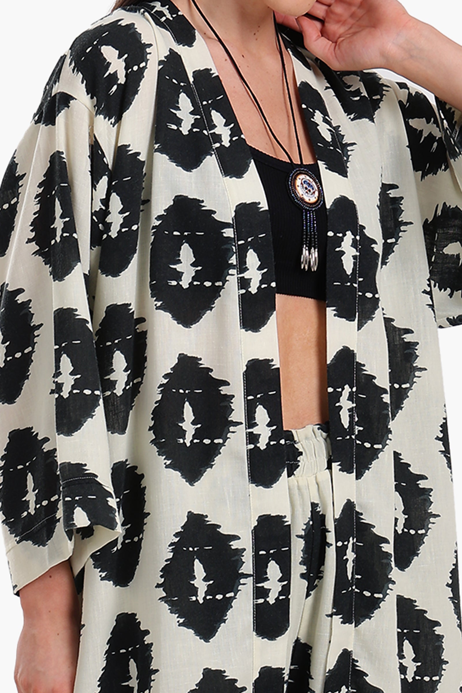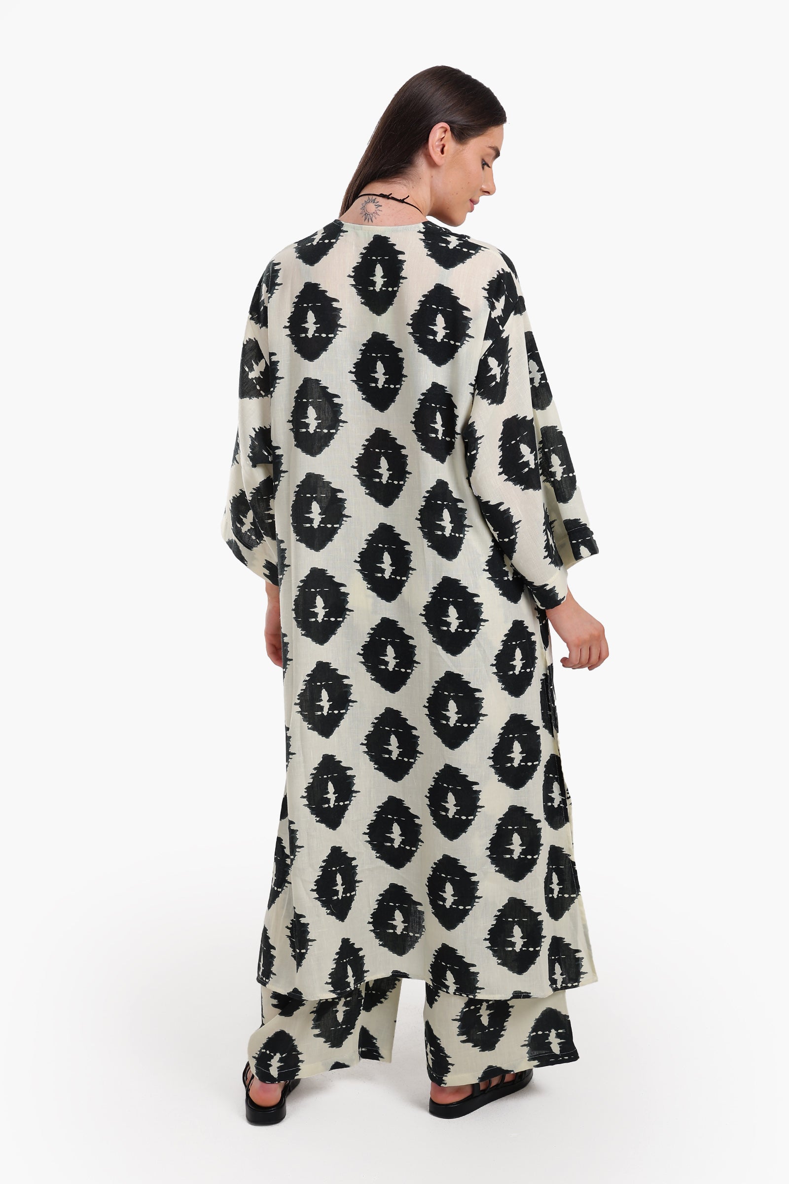 تألقي بإطلالات مثالية تجمع بين الراحة والأناقة مع الكيمونو الأنيق من التينسل من كلو، مصمم بقصة مريحة وطول ميدي واسع لسهولة الارتداء. مصنوعة من نسيج التينسل الناعم والمسامي لتنساب بأناقة مع ضمان راحتك طوال اليوم. يُضفي النمط المطبوع لمسة أنيقة بينما يعزز التصميم المفتوح والأكمام الطويلة من مظهره المتنوع. العباية سهلة الارتداء، مما يجعلها مثالية للإطلالات الكاجوال والفورمال لتصبح قطعة اساسية في أي دولاب ملابس.