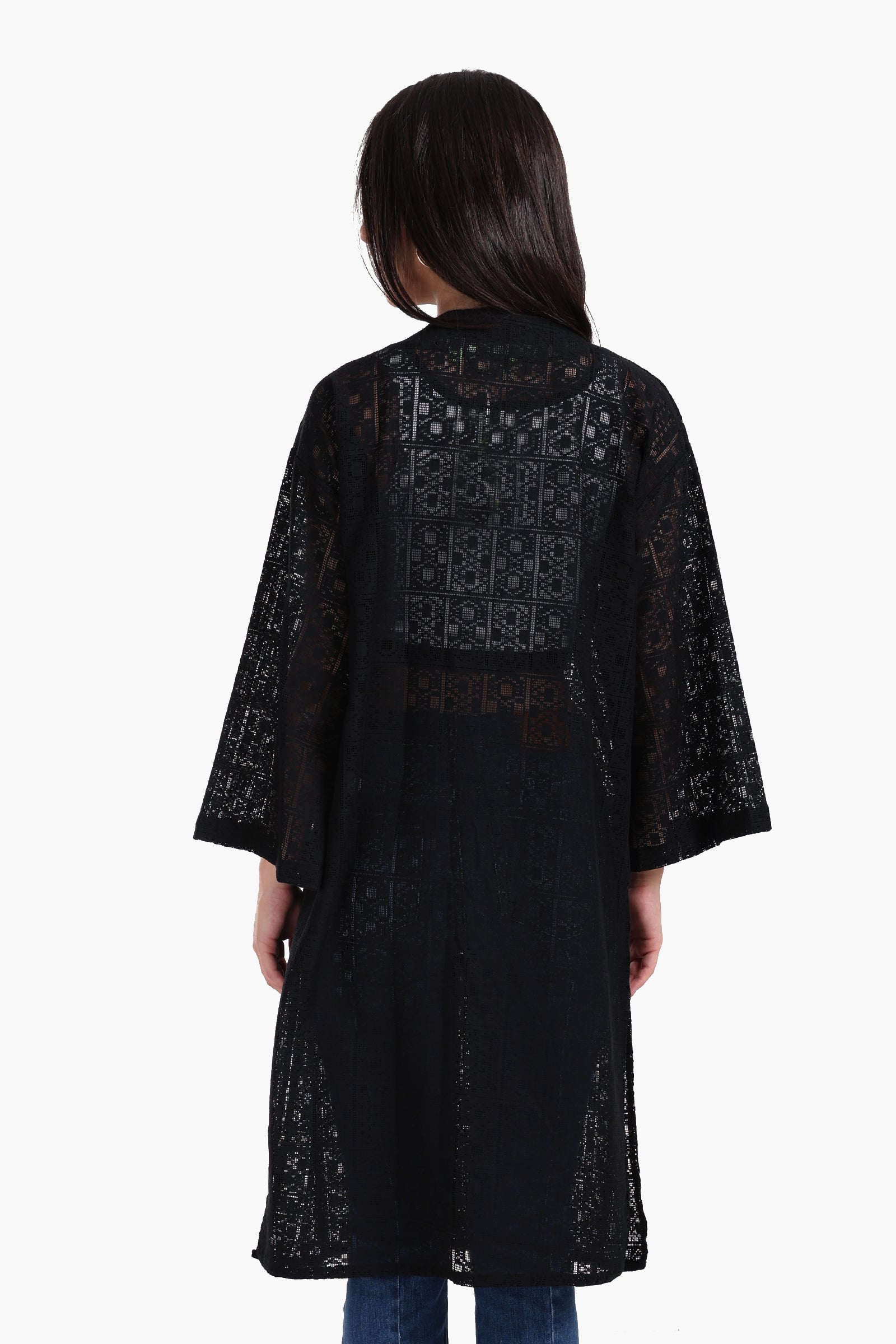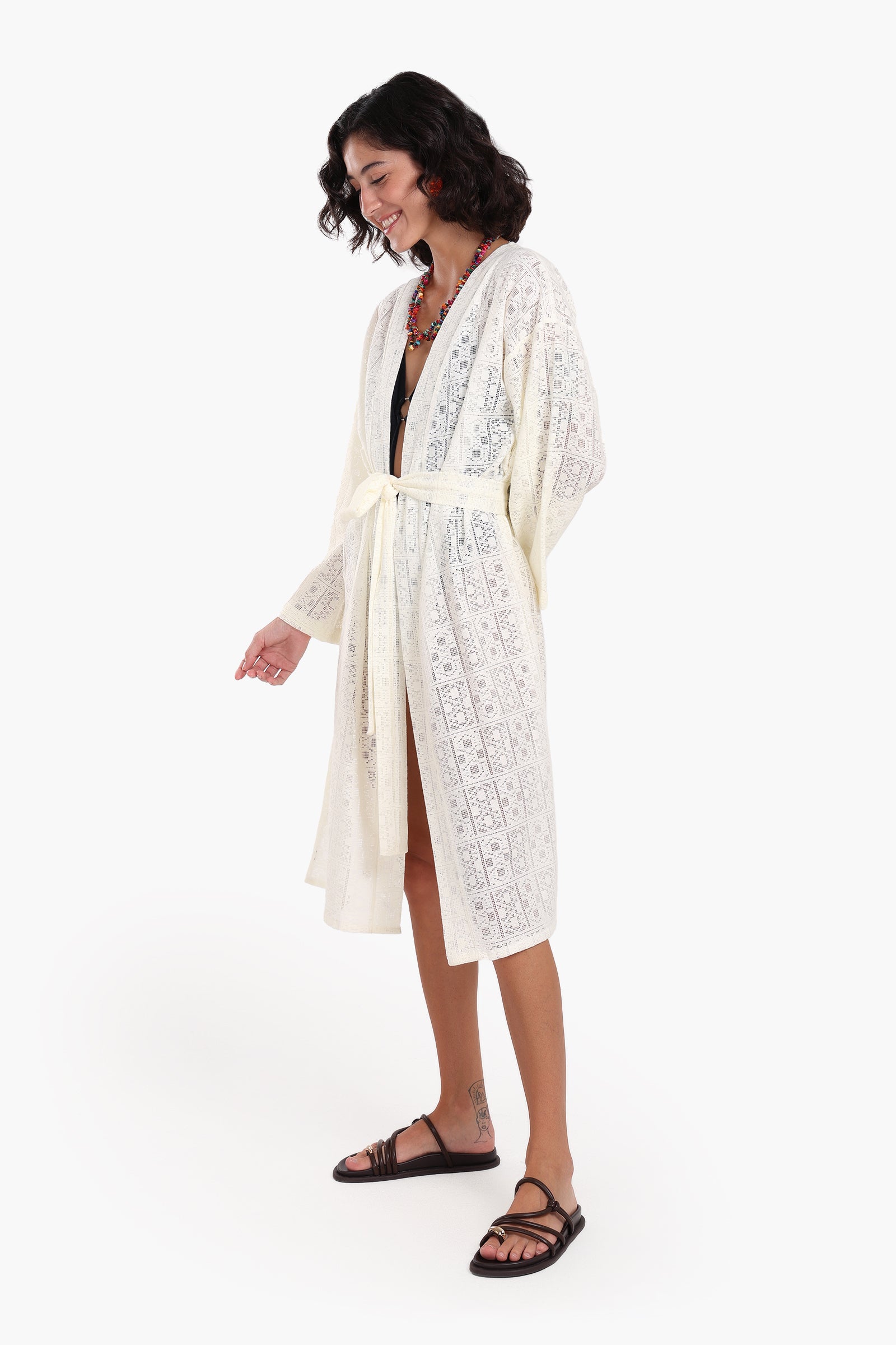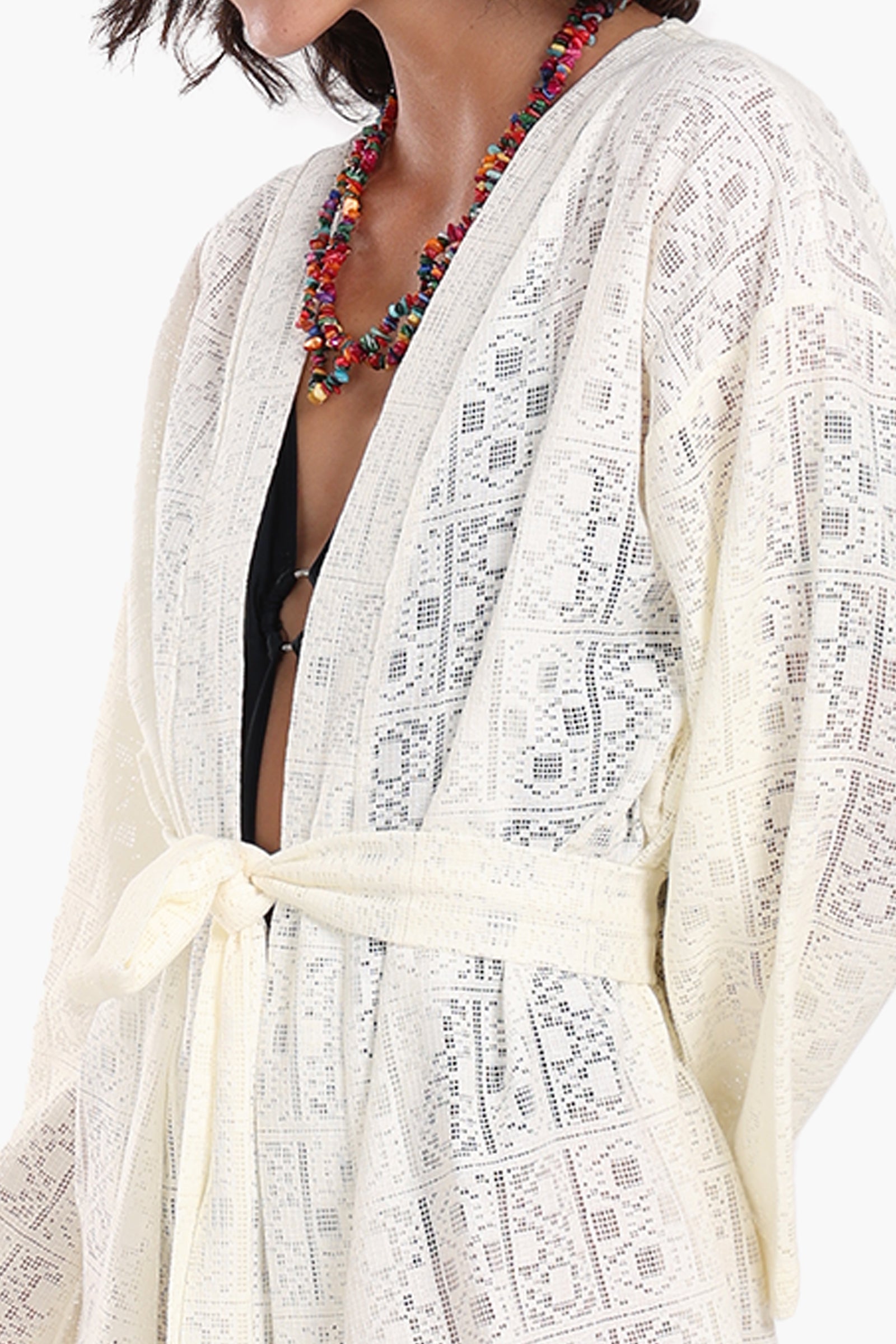 أضيفي لمسة من الأناقة الراقية إلى خزانتك مع هذا الكيمونو المصنوع من خامة التينسيل الناعمة، بتصميم مريح وقصّة فضفاضة تجعله مثاليًا للتنسيق بطبقات دون مجهود. يتميّز بياقة مفتوحة، وأكمام طويلة، وحزام خصر قابل للإزالة يمنحك حرية تنسيق الإطلالة بحسب ذوقك والمناسبة.نقشة الدانتيل الدقيقة تضيف إحساسًا أنثويًا ناعمًا ولمسة هوائية مريحة، بينما تمنحك الفتحات الجانبية مزيدًا من الراحة وسهولة الحركة. سواء ارتديته بشكل كاجوال أو نسّقته لإطلالة أنيقة، يظل هذا الكيمونو اختيارًا مثاليًا للظهور بإطلالة أنيقة ومريحة في آنٍ واحد.