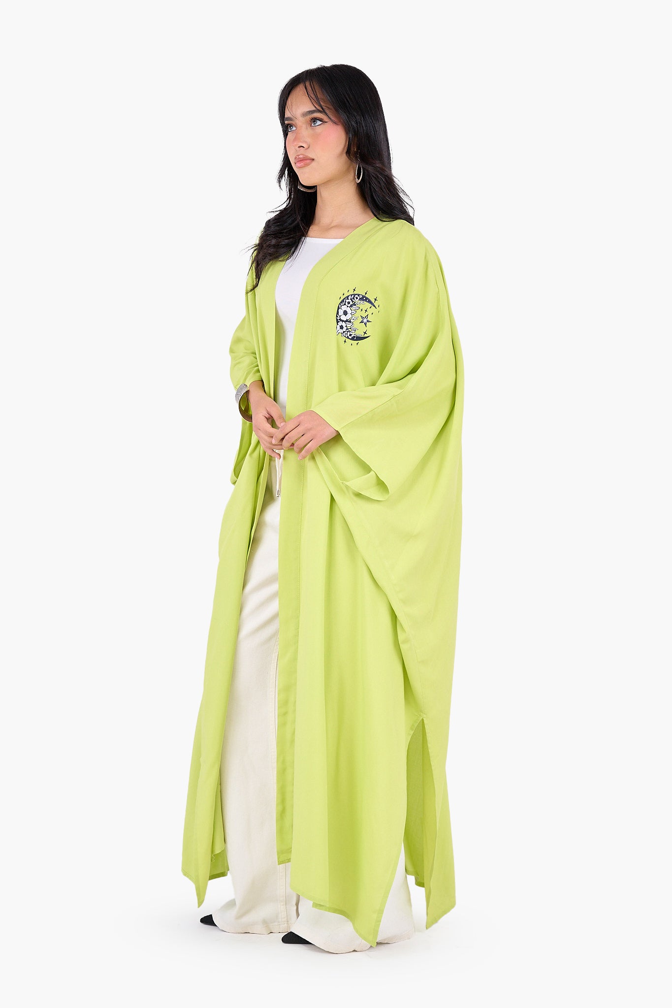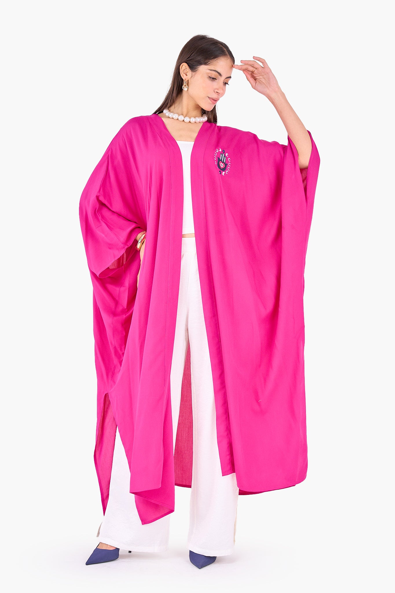 اكتشفي سر الرقي العصري في إطلالاتك مع الكيمونو الماكسي المطرز من كلو، والمصنوع من خامة التينسل الناعمة الفاخرة. يتميز بقصة اوفرسايز وأكمام واسعة، لينساب بكل خفة على قوامك مما يوفر الراحة والمظهر الأنيق. مع نمط سادة مزين بتطريز على الظهر لإضافة لمسة من السحر الرقيق إلى التصميم، بينما تسمح الفتحتان الجانبيتان بسهولة الحركة. الكيمونو سهل الارتداء، وبطول كامل مثالي للتنسيق مع القطع المتنوعة سواء للنهار أو الليل.