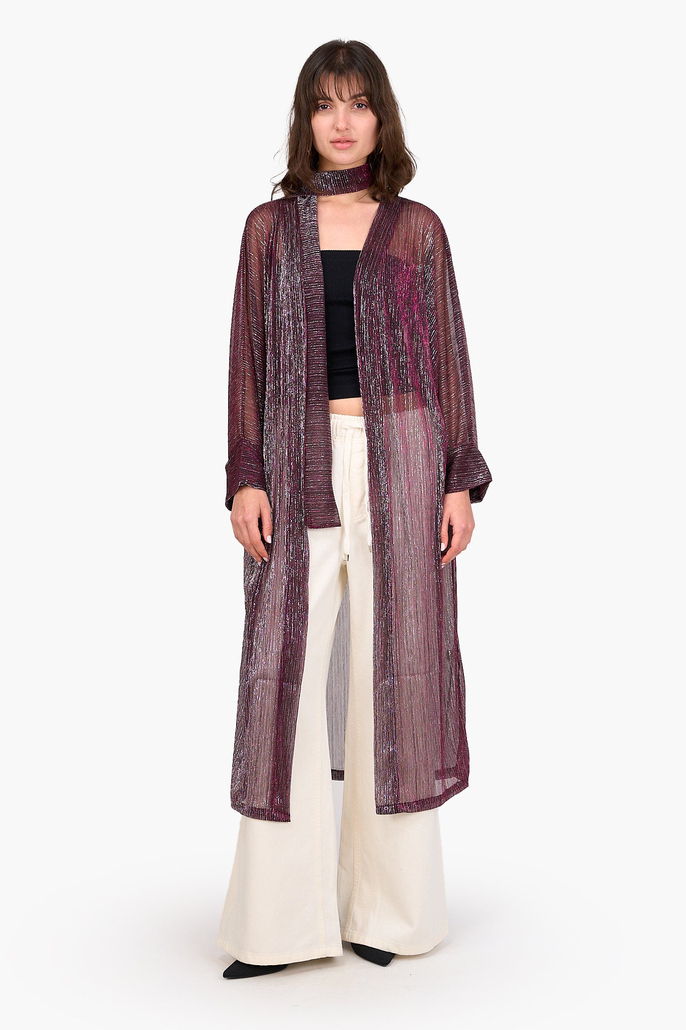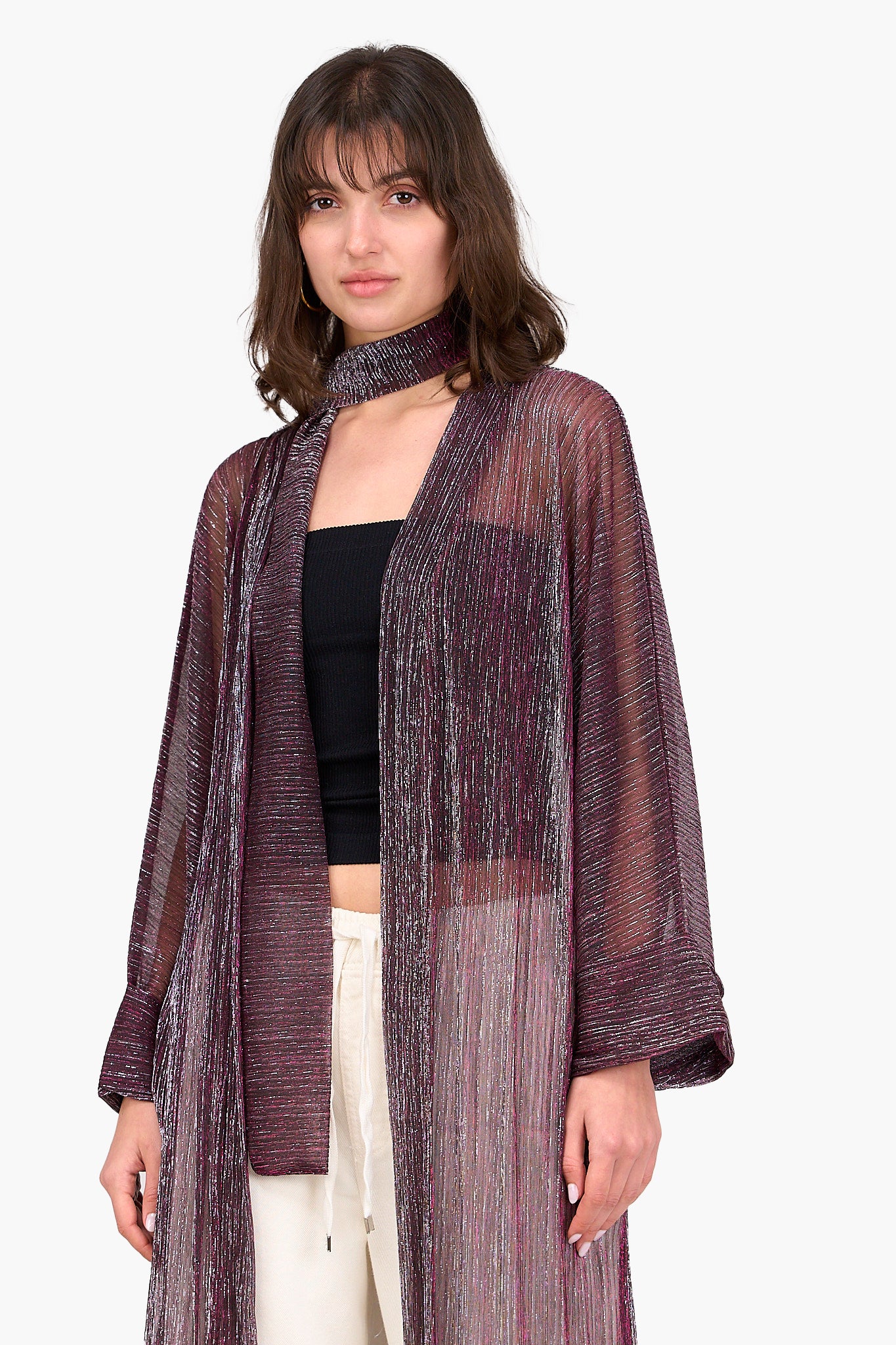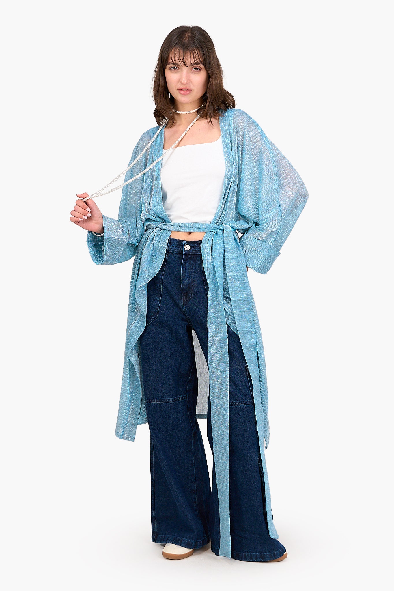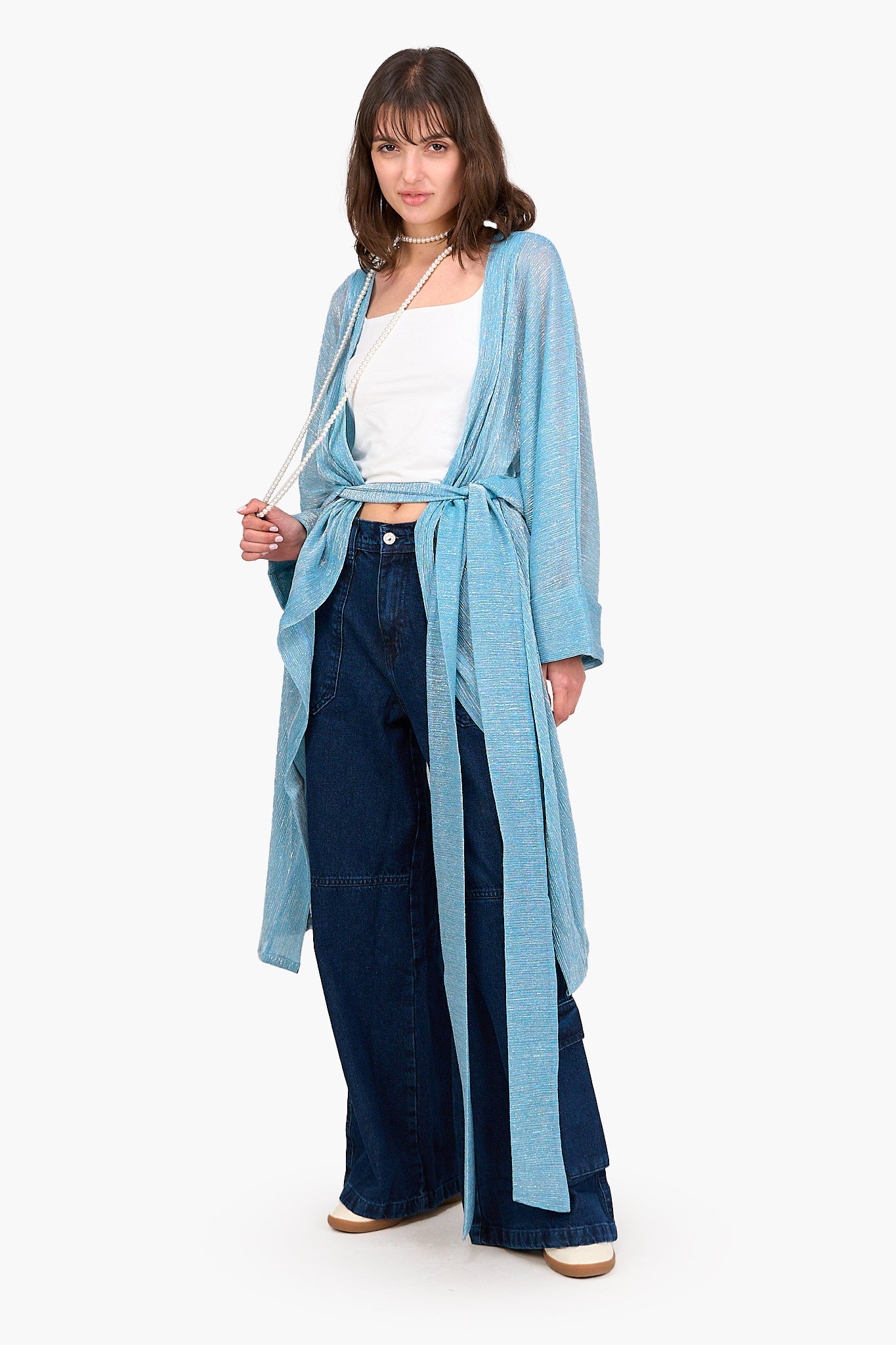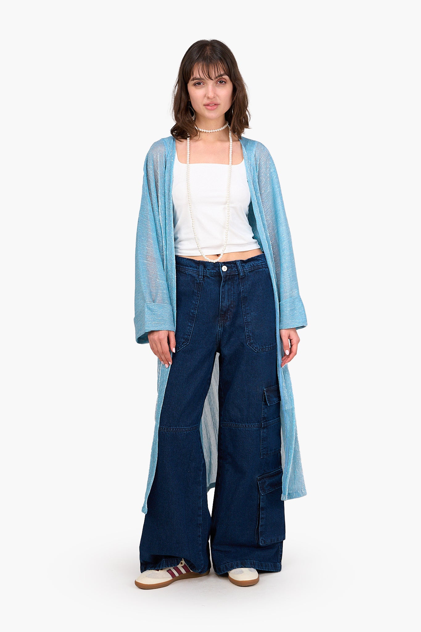 أضيفي لمسة من الأناقة العصرية إلى دولاب ملابسك مع الكارديجان التينسل اللامع من كلو، مصمم خصيصًا لسهولة التنسيق مع القطع المتنوعة. مصنوع من التينسل الخفيف والمسامي مع قصة عادية وطول ميدي لينساب بجاذبية على قوامك. يُضفي النمط اللامع لمسة مثالية للإطلالات الكاجوال والخروجات المسائية. مع تصميم مفتوح وأكمام طويلة لإضافة المزيد من الجاذبية إلى مختلف إطلالاتك. بالإضافة إلى حزام قابل للفك يسمح بتنوع التنسيق حتى يمكنك ربطه على الوسط لإطلالة أنثوية تبرز جمال الوسط أو تركه مفتوحًا لمظهر أكثر راحة. الكارديجان سهل الارتداء، مما يجعله مثاليًا للارتداء فوق أي فستان أو توب أو جامبسوت ليصبح قطعة اساسية أنيقة في أي دولاب ملابس.