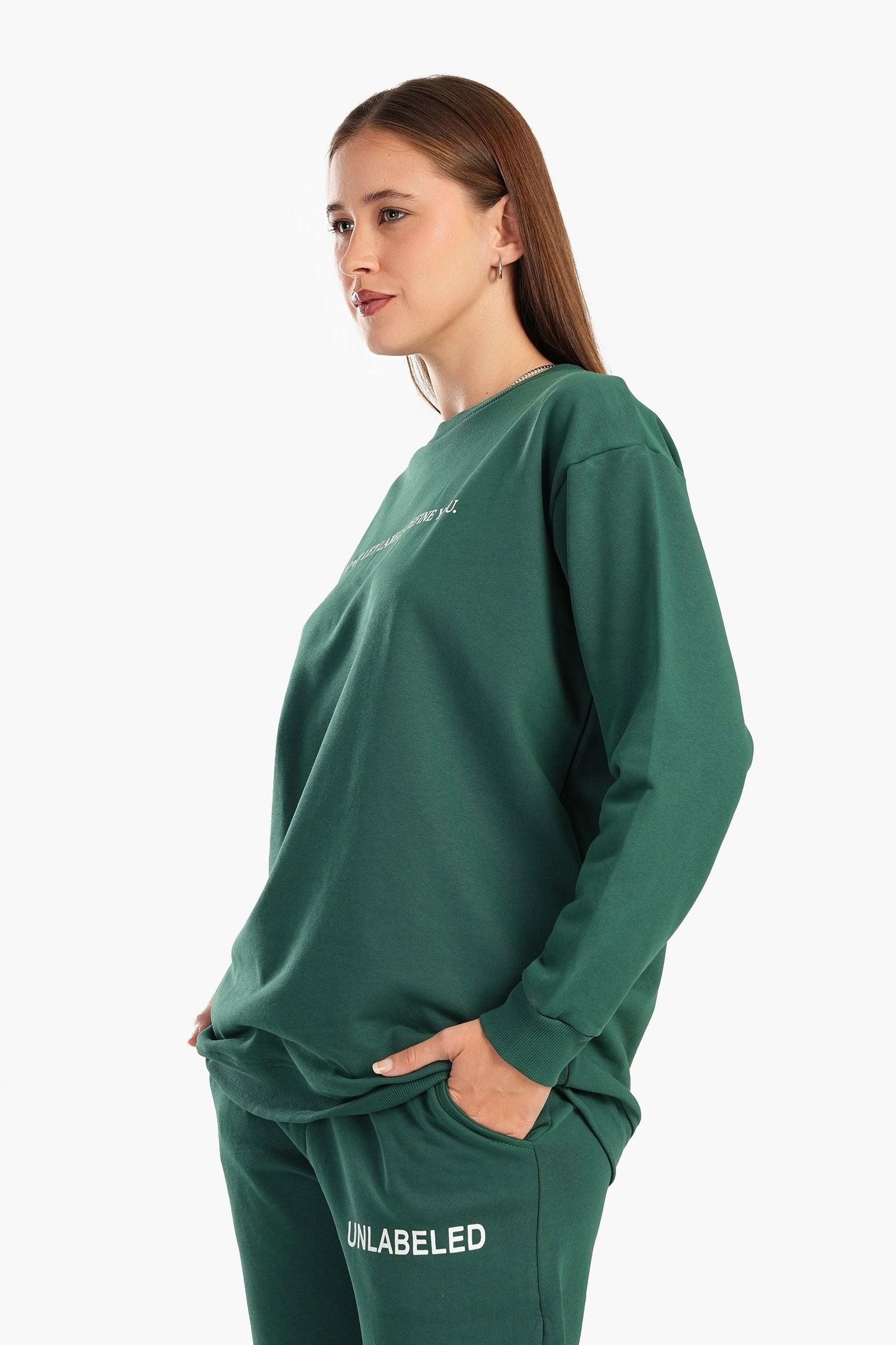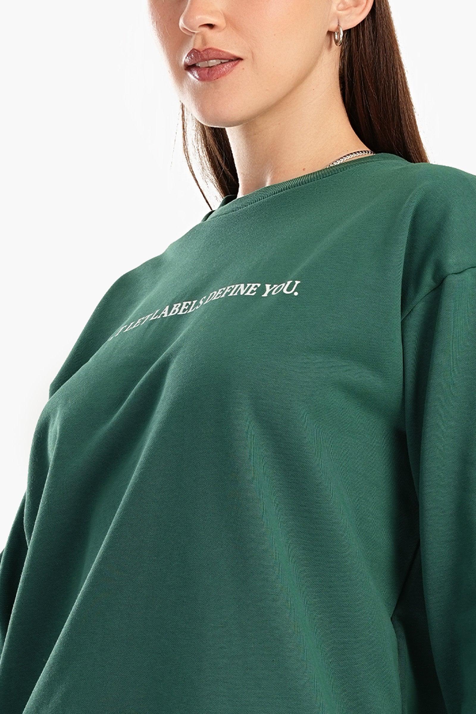 تألقي بإطلالات تجمع بين الراحة والأناقة مع السويتشيرت المريح من كلو. مصنوع من خامة الميلتون الناعمة بقصة عادية لضمان الراحة وسهولة الارتداء. مع نمط مطبوع جريئ على الصدر ""DON'T LET LABELS DEFINE YOU"" يُضفي لمسة عصرية إلى مظهرك ويشجعك على الثقة بنفسك والتعبير عنها بكل فخر. يتميز بأكمام طويلة وفتحة رقبة دائرية وقصة كتف منخفضة، ليوفر الملائمة المريحة المثالية لخروجاتك الكاجوال أو للاسترخاء بالمنزل. السويتشيرت سهل الارتداء والتنسيق مع إطلالاتك المختلفة.