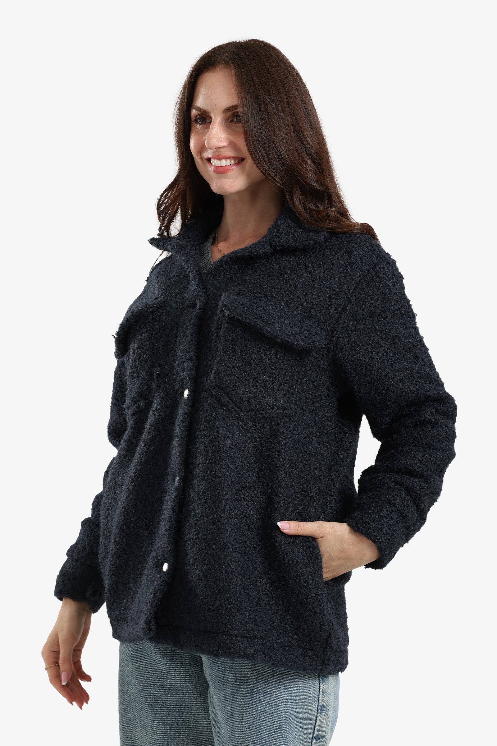 مصنوع من مزيج الصوف الدافئ، يأتي هذا القميص بقصّة فضفاضة وتصميم سادة أنيق وبسيط. يتميز بياقة كلاسيكية وأكمام طويلة بأساور مزرّرة، مع صف أزرار أمامي كامل لسهولة الارتداء. يكتمل بجيوب على الصدر والجانبين ليمنح مزيجاً مثالياً من الراحة العملية والأسلوب الكاجوال — خيار مثالي للارتداء الطبقي في الأجواء الباردة.