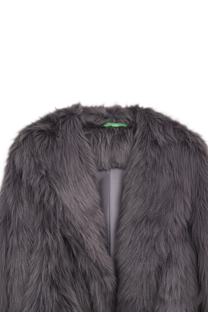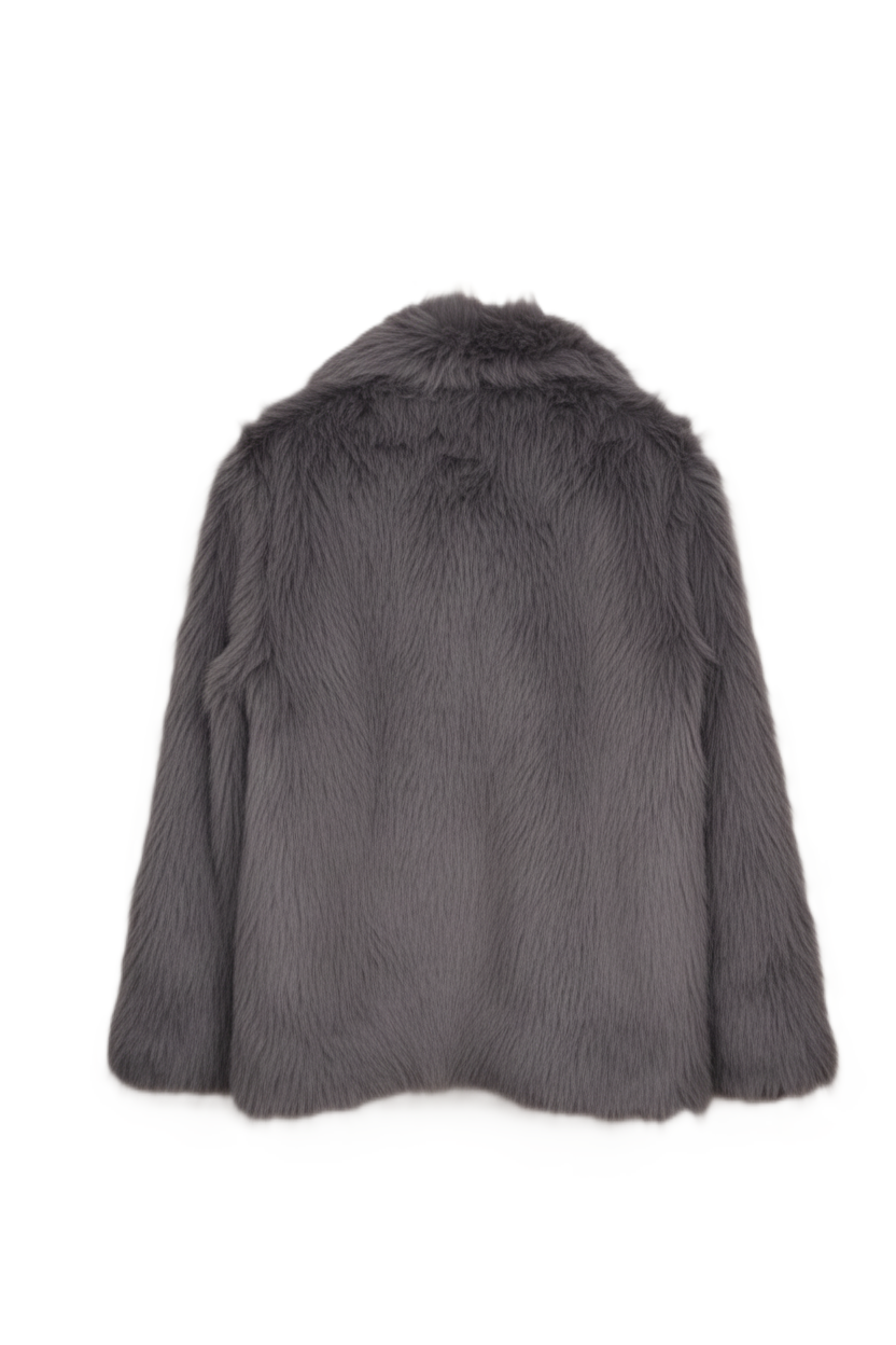 يجمع هذا الجاكيت الفرو المصنوع من الصوف بين الدفء والأناقة بشكل مثالي. مصمم بقصة واسعة ونقشة سادة، ويتميز بياقة منسدلة ورقبة مفتوحة تتدلى بشكل جميل لتمنحك إطلالة سهلة وأنيقة. تضيف الأكمام الطويلة والواسعة لمسة دافئة، مما يجعله مثالياً لتنسيق الطبقات في الأيام الباردة مع الحفاظ على شعور أنيق ومريح.
