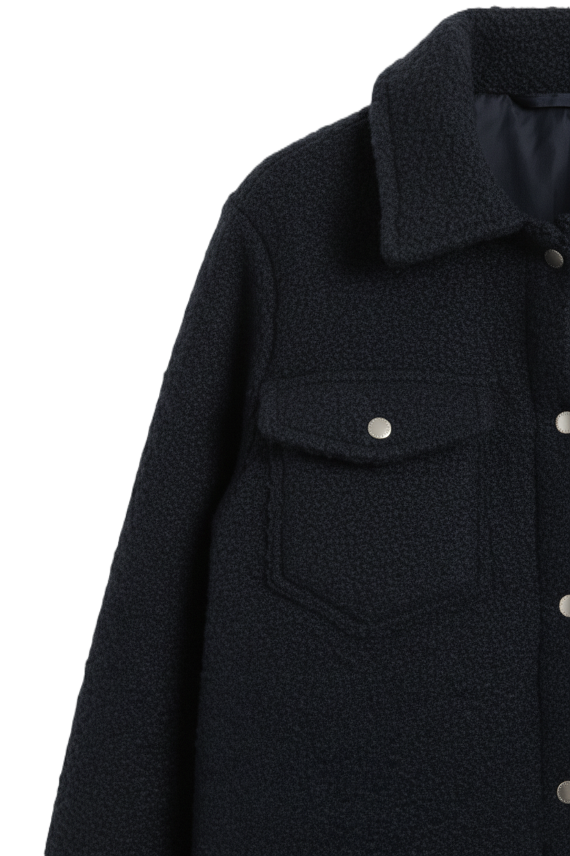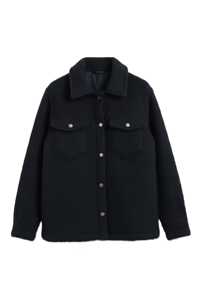 مصنوع من مزيج الصوف الدافئ، يأتي هذا القميص الشتوي بقصّة مريحةوتصميم سادة أنيق وبسيط. يتميز بياقة كلاسيكية وأكمام طويلة بأساور مزرّرة، مع صف أزرار أمامي كامل لسهولة الارتداء. يكتمل بجيوب على الصدر والجانبين ليمنح مزيجاً مثالياً من الراحة العملية والأسلوب الكاجوال — خيار مثالي للارتداء الطبقي في الأجواء الباردة.