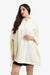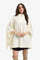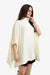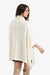 This oversized poncho sweater is a chic and comfortable piece. It's an off-white or cream color and features a high, zippered neckline that can be worn open or closed. The wide, flowing sleeves add to its relaxed, draped silhouette, making it a perfect layering piece.