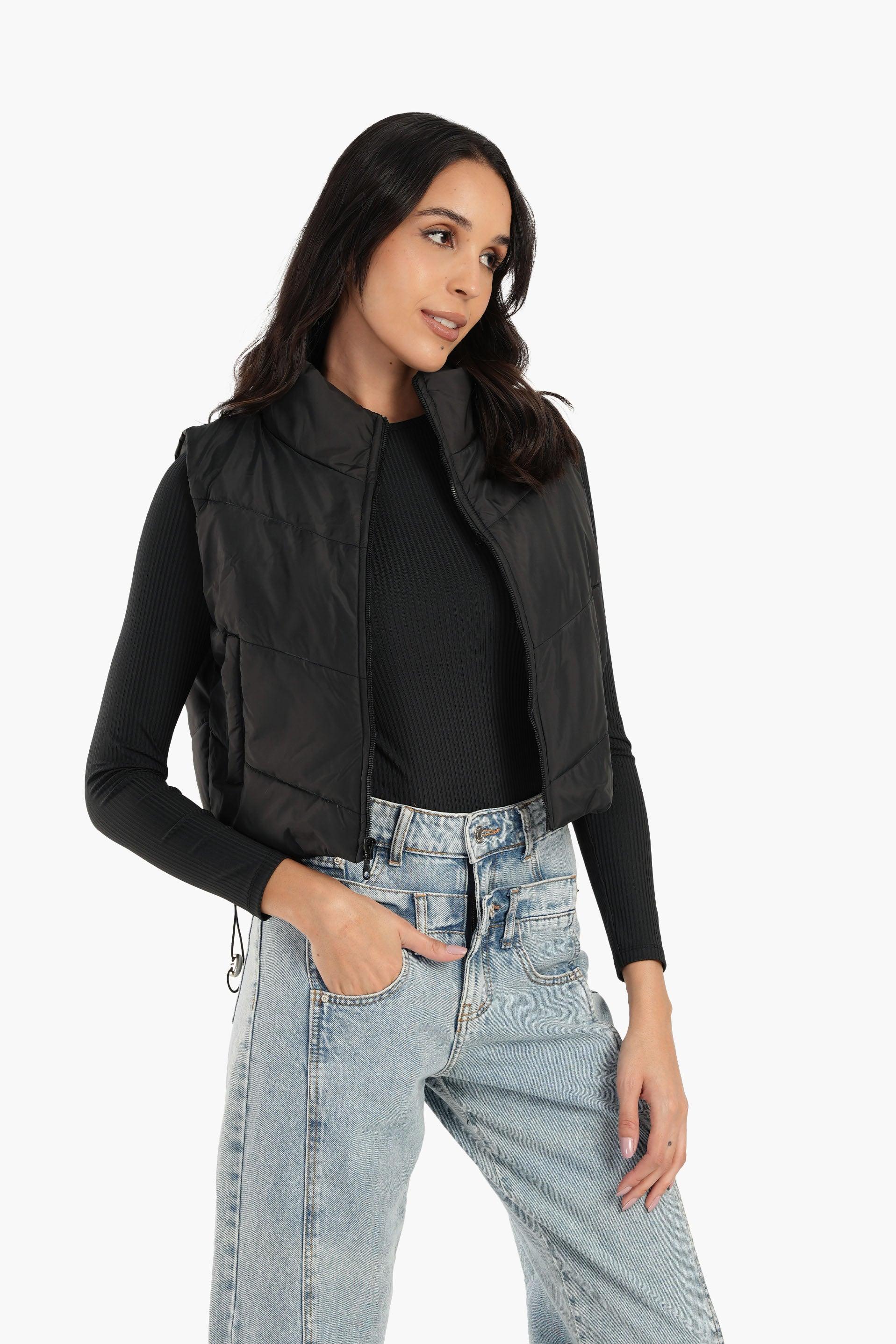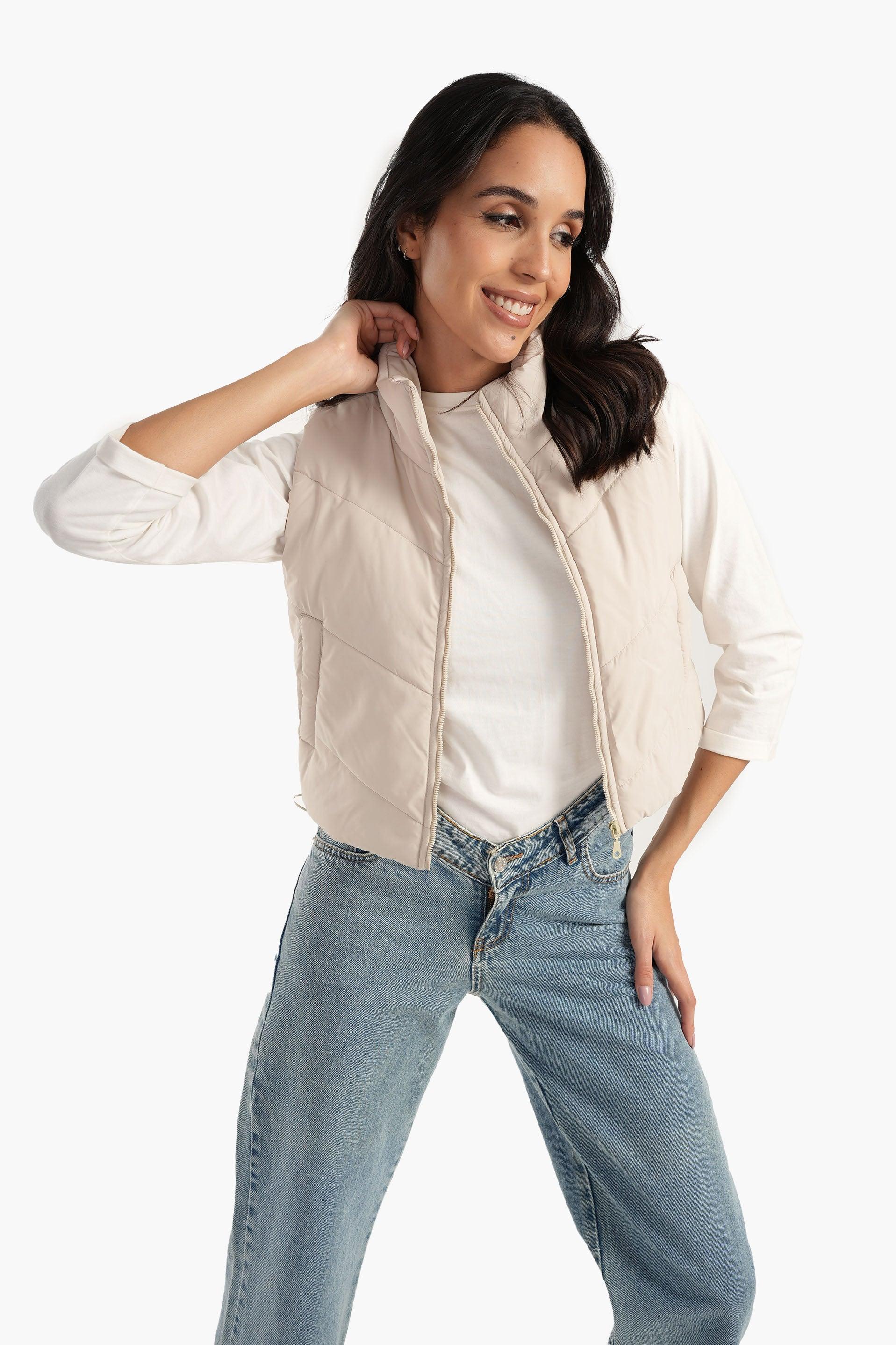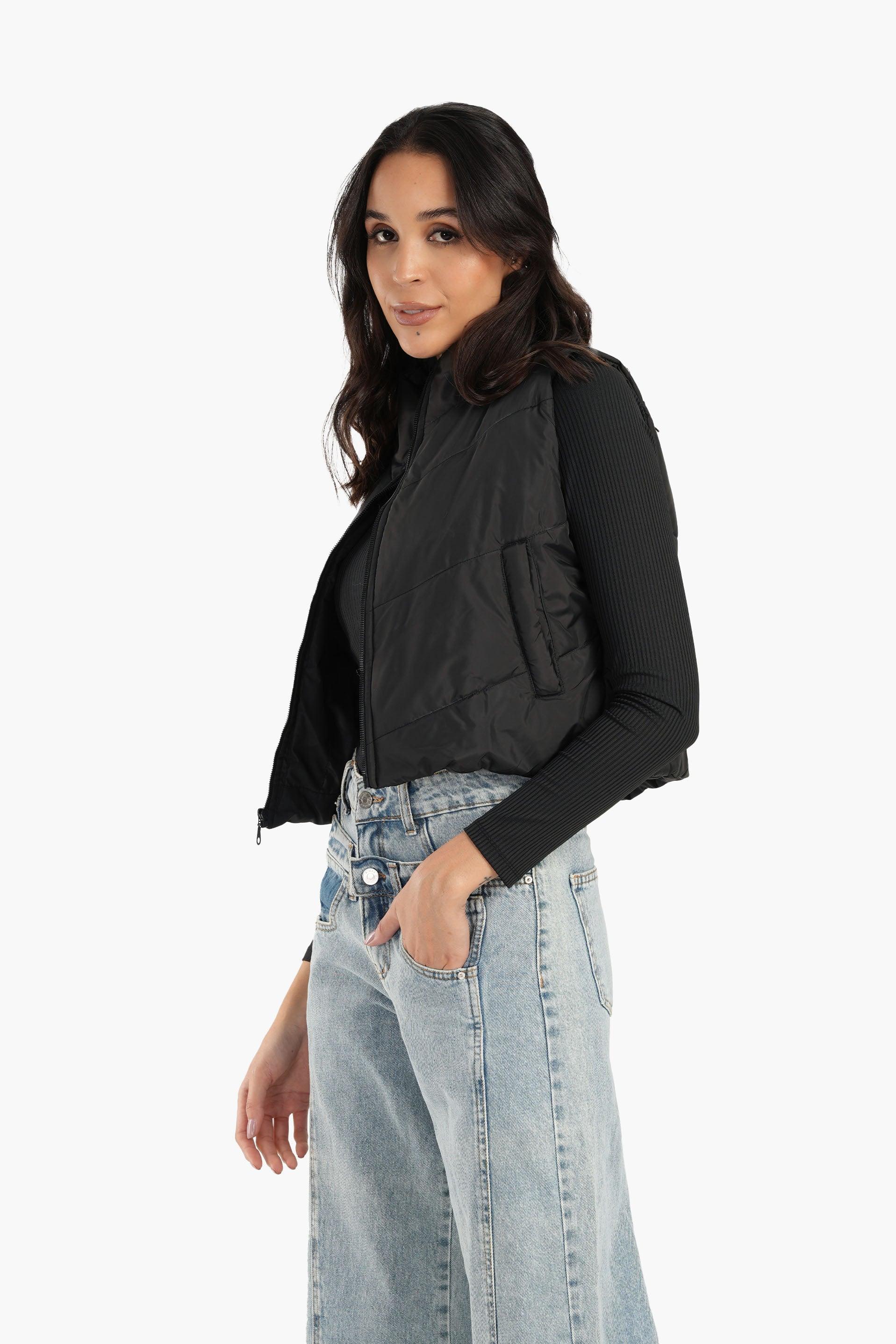 Stay stylish and protected from the elements with this waterproof vest, featuring a sleek solid pattern and a modern cropped puffed design. Designed for a regular fit, this vest includes a high neck for added warmth, a full zipper closure for convenience, and two functional side pockets for storing essentials. The sleeveless style makes it perfect for layering over your favorite outfits, offering both practicality and style in unpredictable weather. Easy to wear and versatile, this vest is a great addition to any wardrobe.