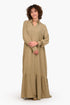 The Tencel Maxi Dress is a timeless and effortlessly stylish piece crafted for comfort and elegance. Made from breathable Tencel, this dress offers a relaxed fit that gracefully flows with movement. The V-collared neckline adds a refined touch, while the long sleeves with buttoned cuffs bring versatility, allowing you to roll them up for a more casual look. Its tiered design enhances volume and dimension, creating a soft and feminine silhouette. Designed with a maxi length, this dress provides full coverage while maintaining a breezy and lightweight feel, making it a perfect choice for any season.