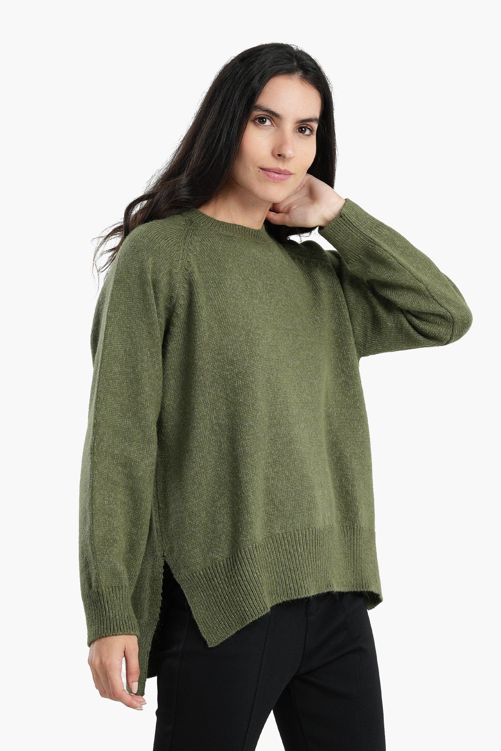 This wool pullover is the perfect blend of comfort and style, designed to keep you warm while looking effortlessly chic. With a relaxed fit and a classic knitted pattern, this pullover provides a cozy, laid-back vibe that's ideal for cooler weather. The round neck and long sleeves create a timeless silhouette, while the ribbed edges at the neckline, cuffs, and hemline add structure and a polished finish. The side slits offer added comfort and ease of movement, making this pullover an easy-to-wear piece that can be styled in various ways.