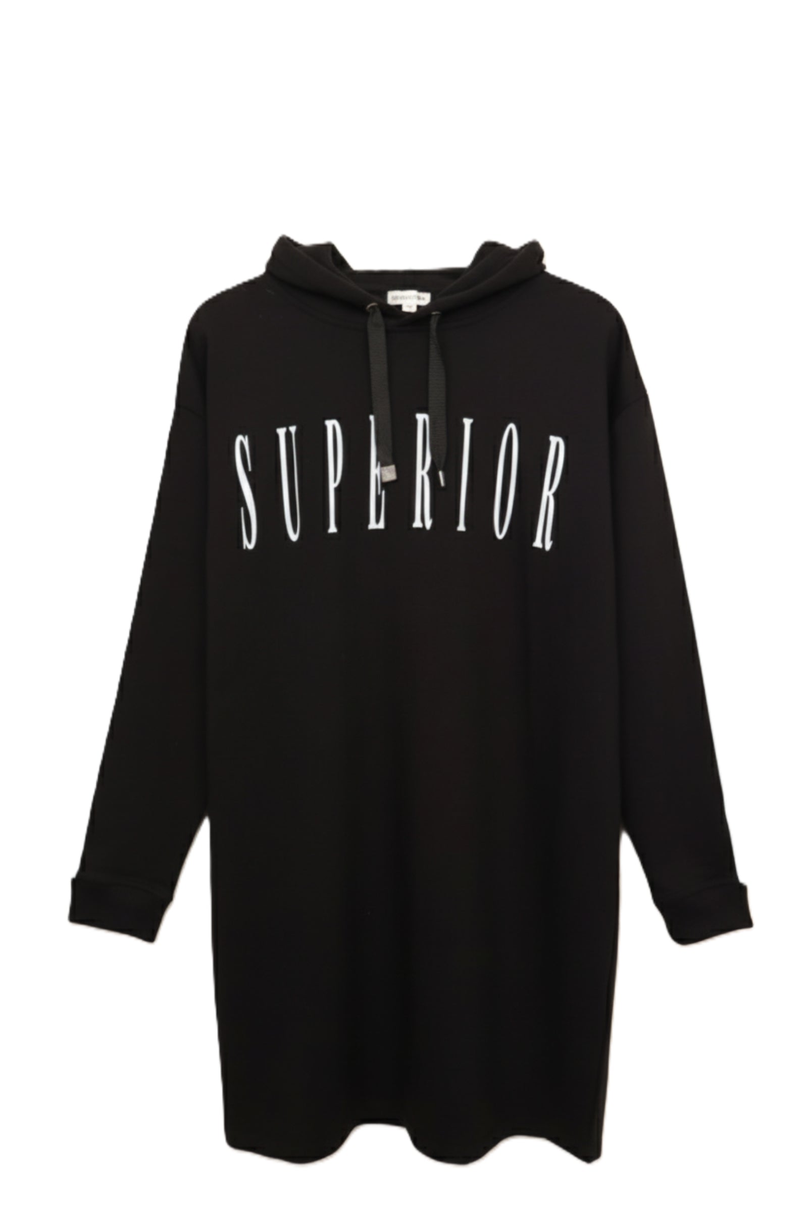 Stay cozy and stylish with this long hooded lounge sweatshirt, crafted from soft Milton fabric for all-day comfort. Designed in a relaxed fit with a hooded neck and drawstrings, it features a bold “Superior” chest graphic and sporty side stripes along the sleeves. With its solid pattern and extended length, this sweatshirt brings effortless ease to your everyday casual looks.