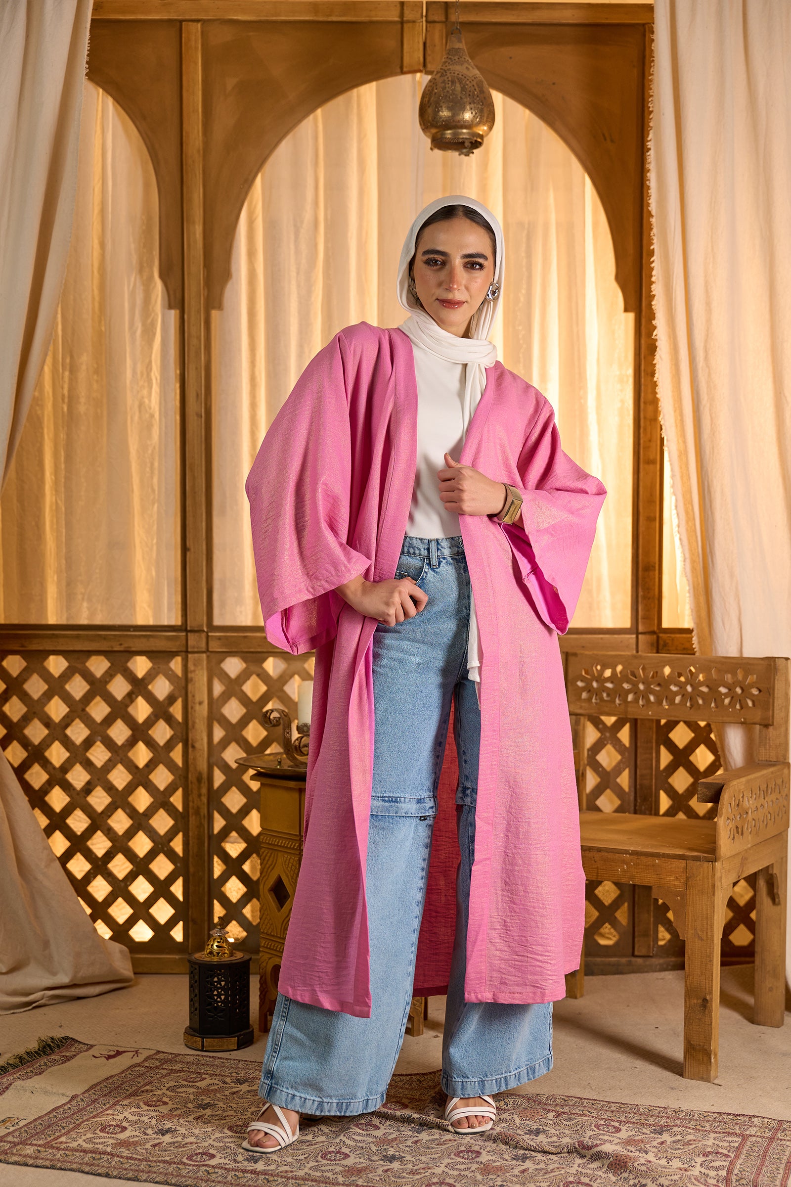 Designed for a loose fit, this linen kimono offers a breezy and effortless silhouette, perfect for layering. Crafted from lightweight, breathable linen, it drapes beautifully while keeping you comfortable. The solid pattern adds a timeless and versatile touch, making it easy to style for any occasion. Featuring an open neckline and long wide sleeves with dropped shoulders, it provides a relaxed yet sophisticated look. The midi length with side slits enhances movement and flow, making it both stylish and functional. With its easy-to-wear design, this kimono is a must-have for effortless layering.