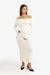 Turn heads with this elegant off-shoulder maxi dress. Crafted from soft wool fabric, it features a wide fold-over neckline with ribbed detailing that adds a touch of texture and sophistication. The slim-fit silhouette flatters your figure, while the long sleeves and maxi length make it perfect for cooler days or evening occasions.