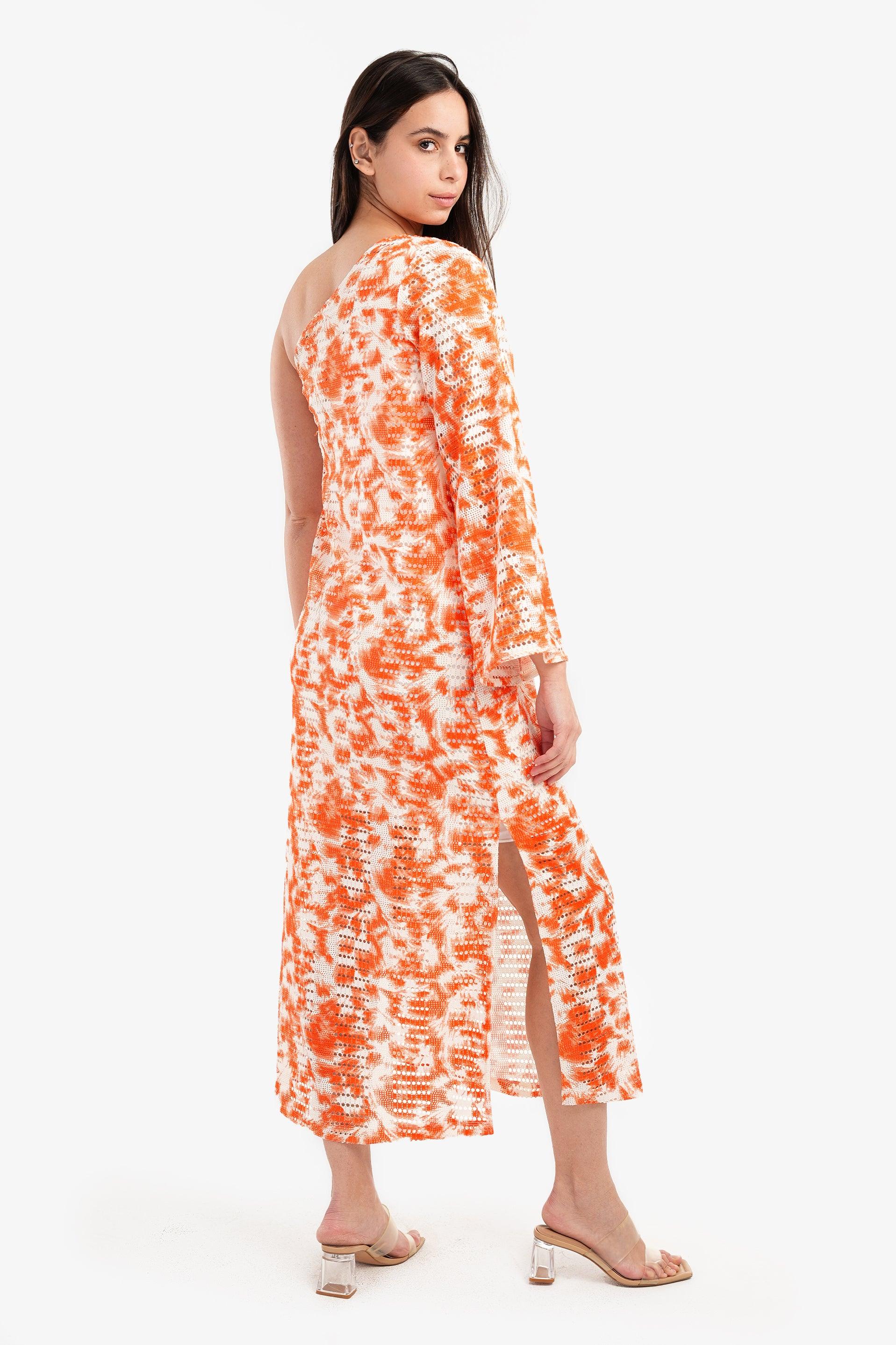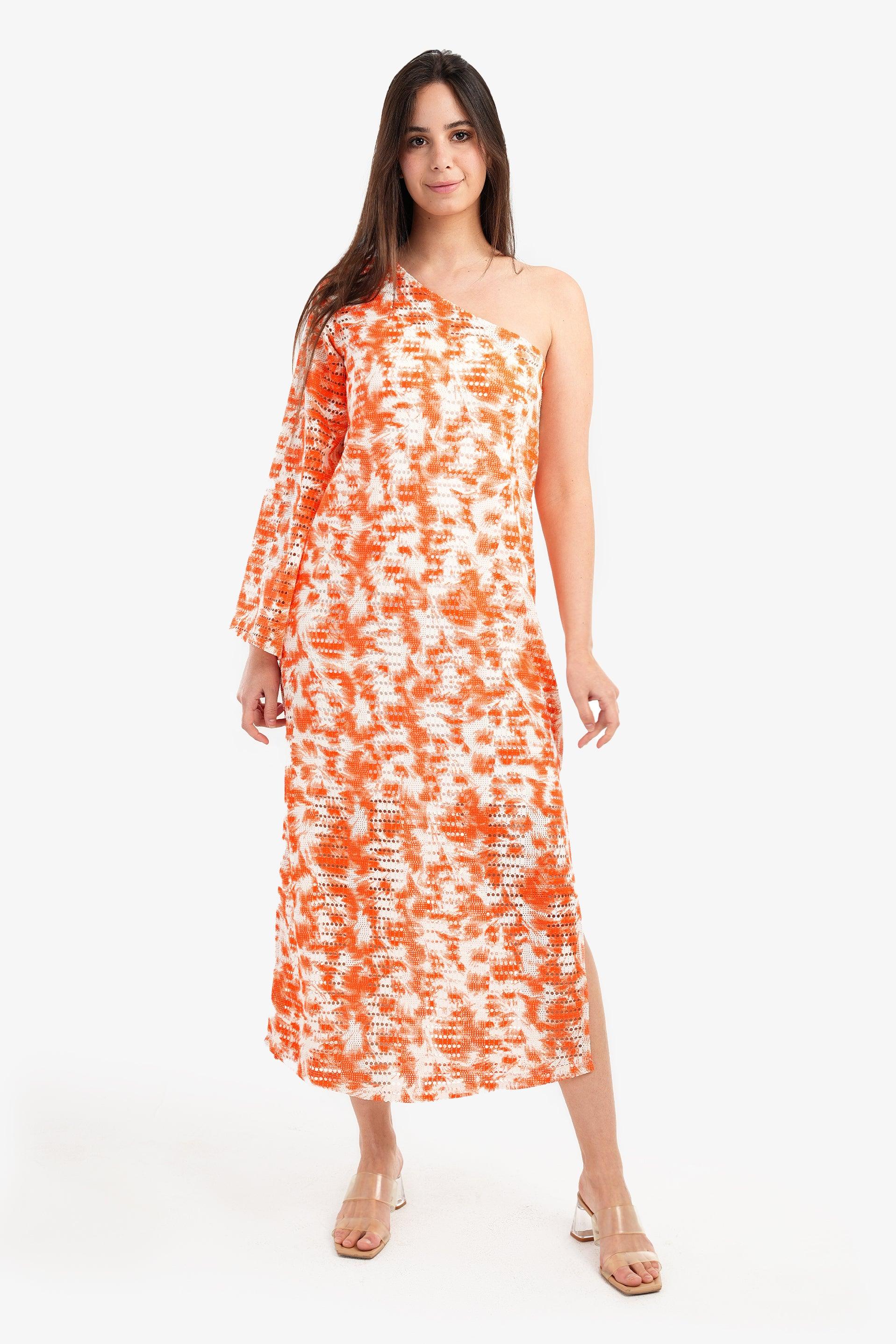 - Indulge in the allure of our One Shoulder Fishnet Dress, a captivating piece designed to make a statement. This dress features a single shoulder design that adds a touch of drama, while the bell sleeves exude a sense of elegance. The midi length and side slits offer a hint of allure, perfect for those who want to showcase their style with confidence. Crafted from high-quality fishnet fabric, this dress is both comfortable and stylish, making it ideal for a variety of occasions.