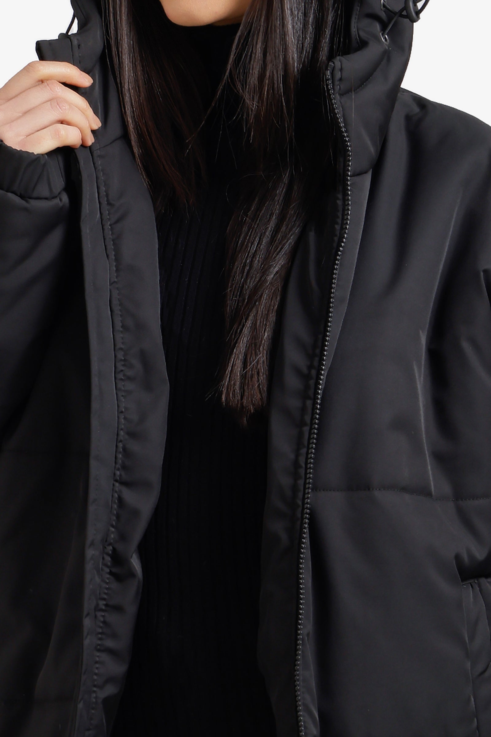 This puffer jacket is designed for warmth and effortless style, featuring an oversized fit and a clean, solid finish. Designed with a hooded neck and stand collar, it offers extra coverage, while the zip-up closure ensures easy wear. Finished with side pockets, elasticated cuffs and hem, this jacket combines comfort, practicality, and a modern silhouette—perfect for everyday layering.