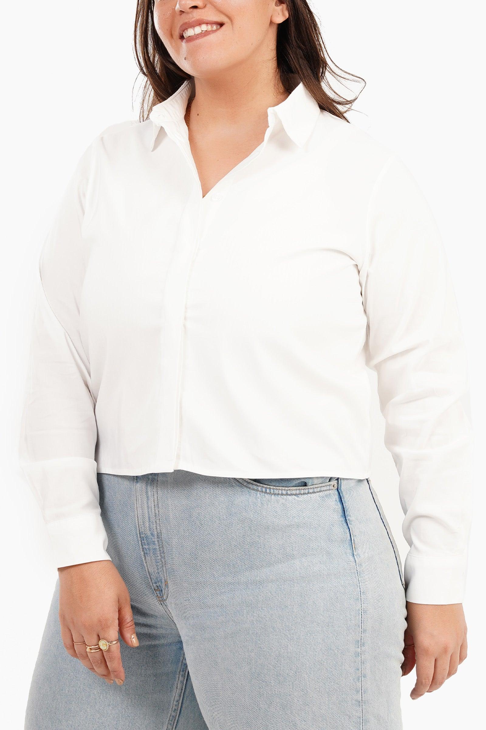 - Add a stylish twist to your wardrobe with this Poplin cropped shirt, featuring a smart fit that is both flattering and comfortable. The solid pattern offers versatility, perfect for pairing with a variety of bottoms. The shirt collar and button-down closure provide a classic look, while the full hidden placket adds a modern touch. With long sleeves and a straight hemline, this cropped shirt is perfect for creating chic and trendy outfits.