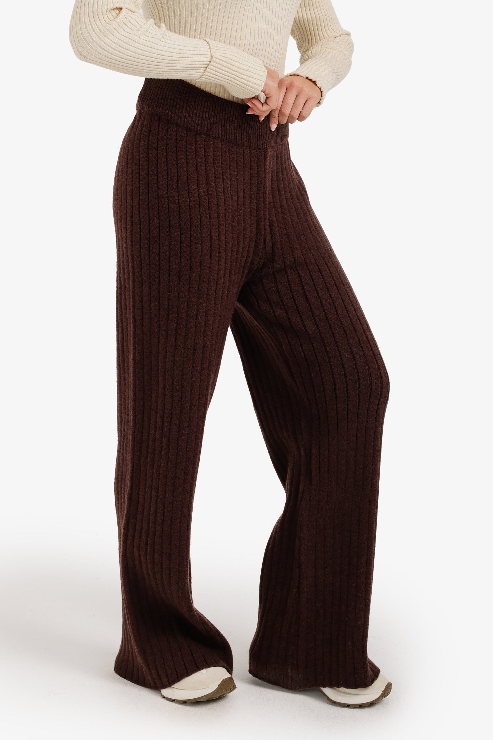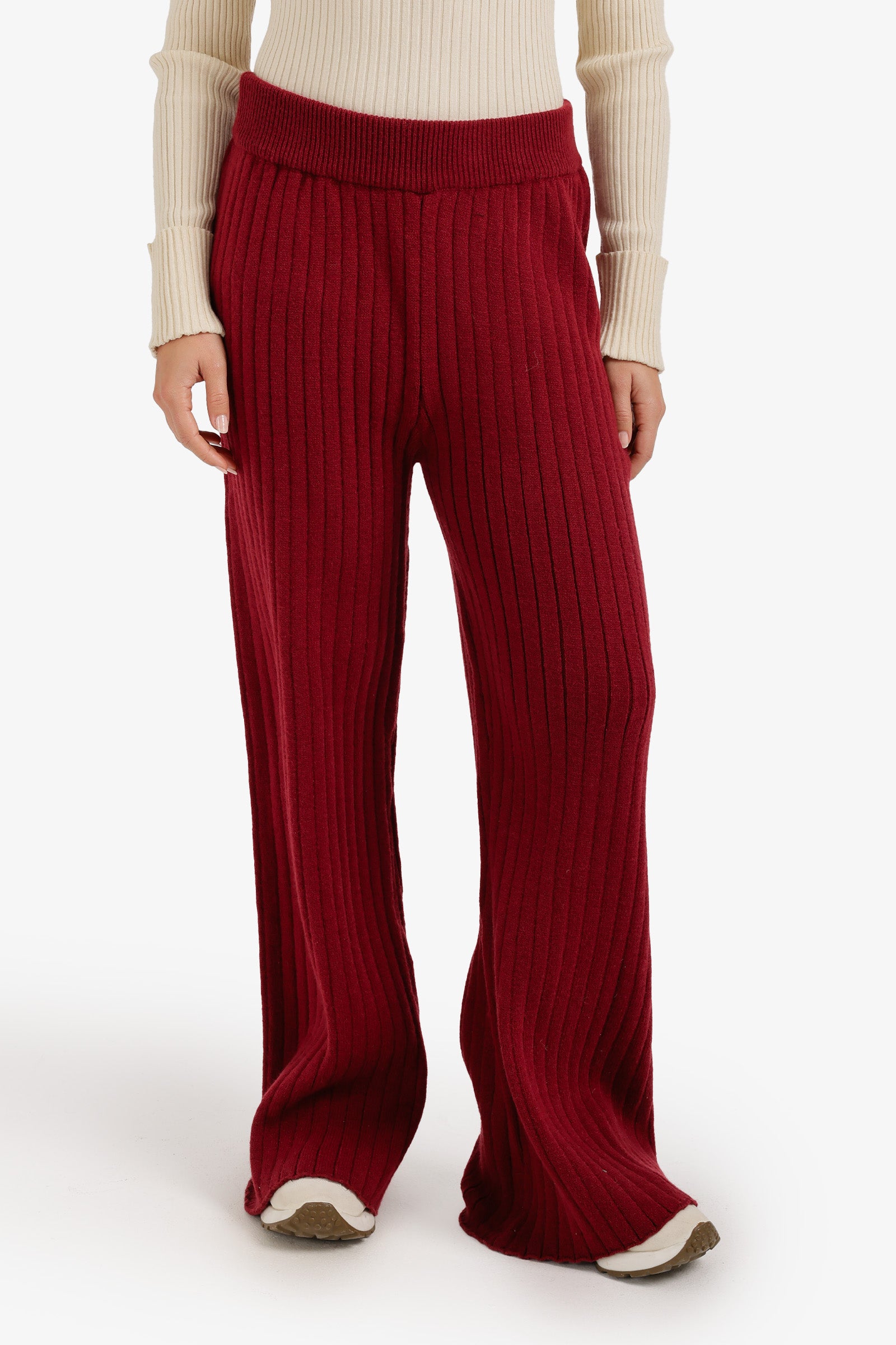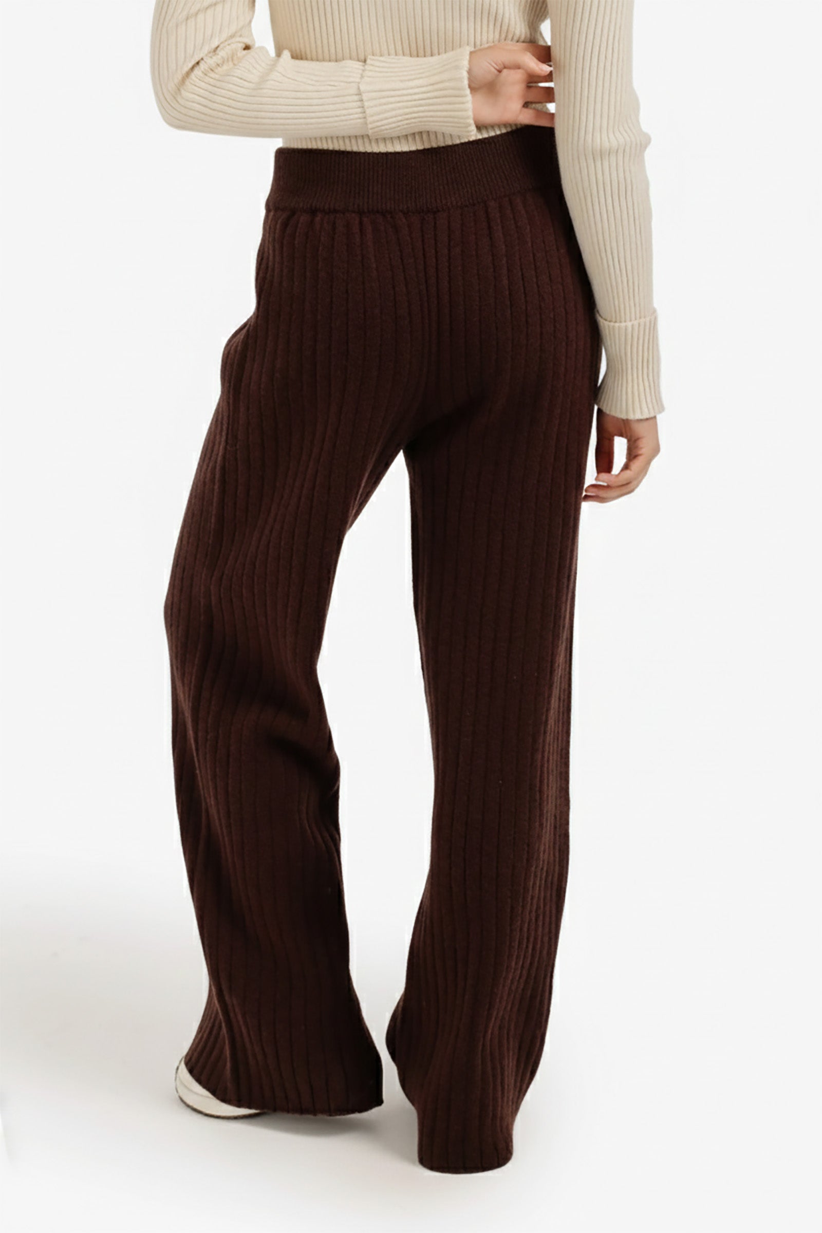 These knit pants are designed for effortless comfort with a relaxed silhouette that moves with you. Crafted from soft knit fabric with a subtle ribbed texture, they feature an elasticated waist for an easy, flexible fit. The wide-leg, full-length cut creates a flattering drape, making them perfect for both laid-back days and polished casual looks.