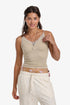 This top is crafted from smooth and stretchy microfiber, designed for a flattering slim fit. It features a ribbed pattern that adds texture and a chic silhouette. The V-neckline is adorned with delicate lace details, offering a touch of elegance. The sleeveless design and adjustable spaghetti straps provide versatility and comfort, ensuring a perfect fit. The slip-on style makes it easy to wear, perfect for layering or as a standalone piece.